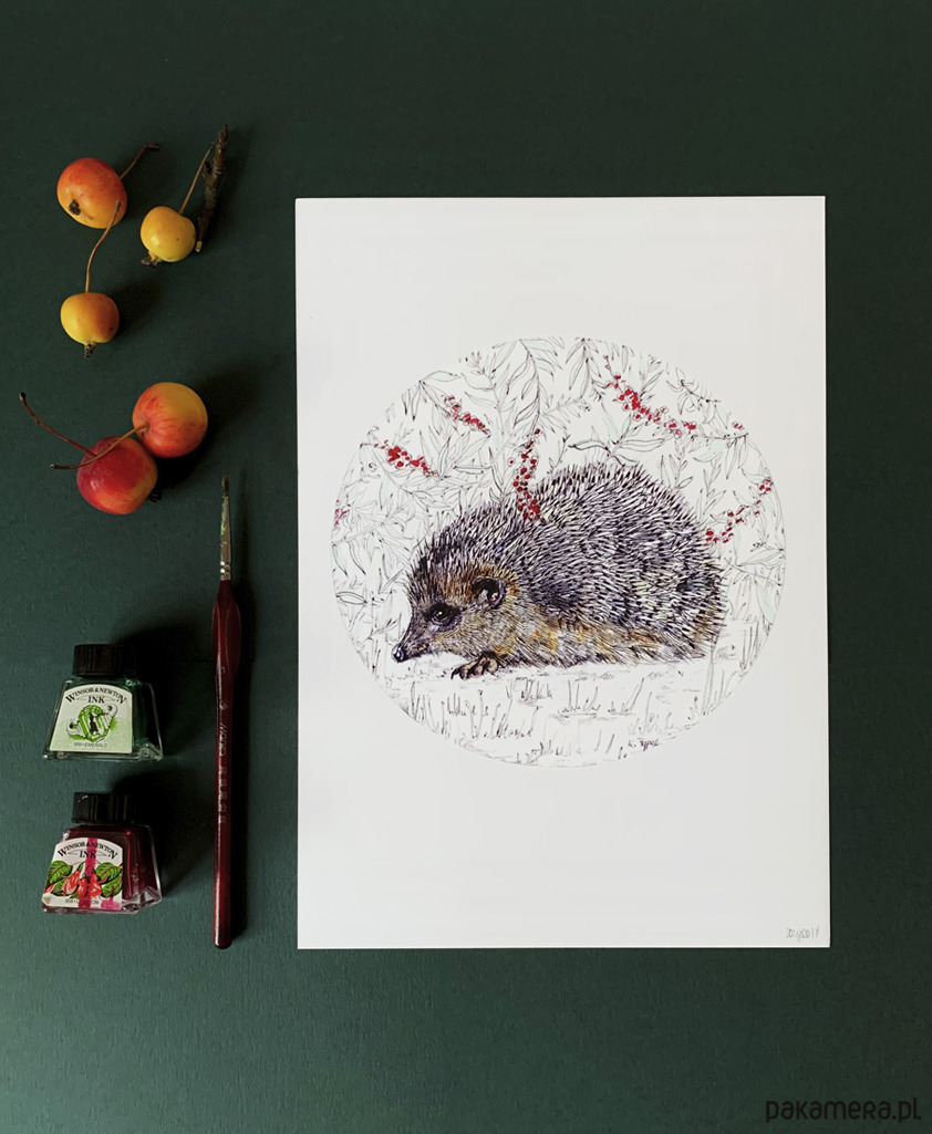 Jeżyk- wydruk autorskiej ilustracji inspirowanej światem rodzimej fauny oraz estetyką vintage