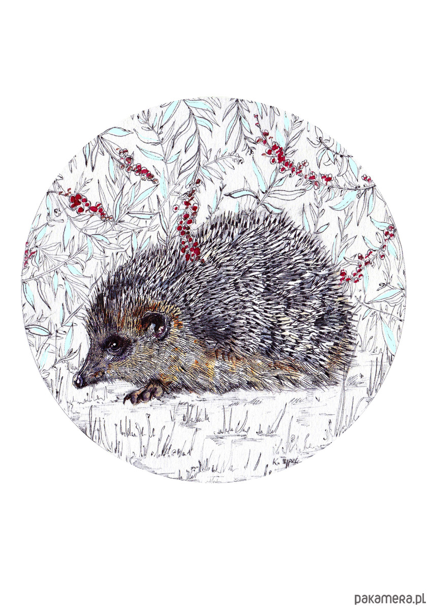 Jeżyk- wydruk autorskiej ilustracji inspirowanej światem rodzimej fauny oraz estetyką vintage