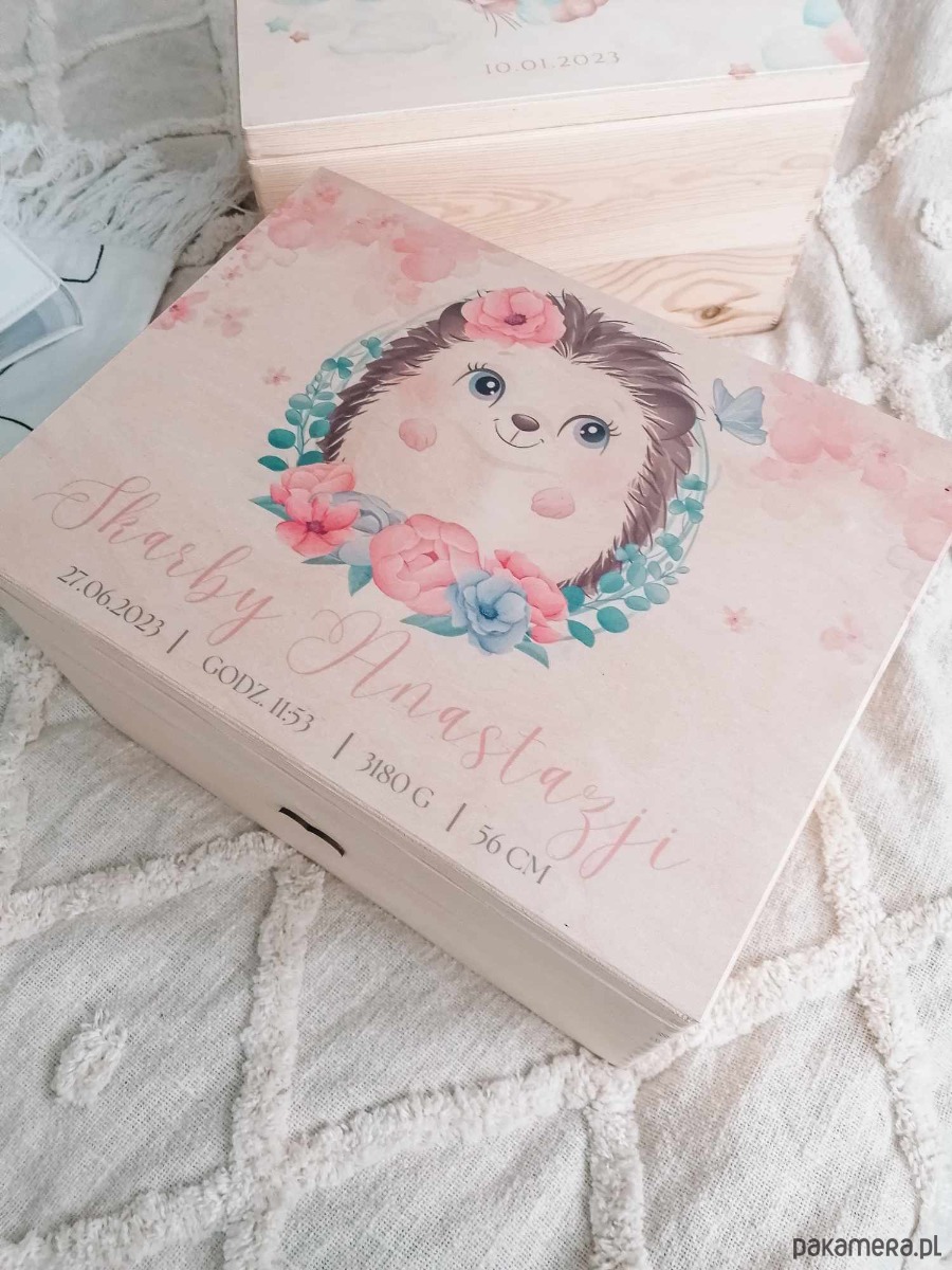 Podaruj wyjątkowy prezent dla dziecka. Zamknij najpiękniejsze chwile dzieciństwa w wyjątkowym kuferku wspomnień! Ten uroczy, drewniany kuferek z motywem jeżyka to idealny prezent dla małej dziewczynki. Personalizowany imieniem, będzie cenną pamiątką na całe życie.