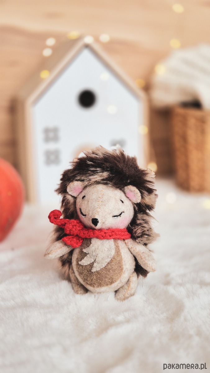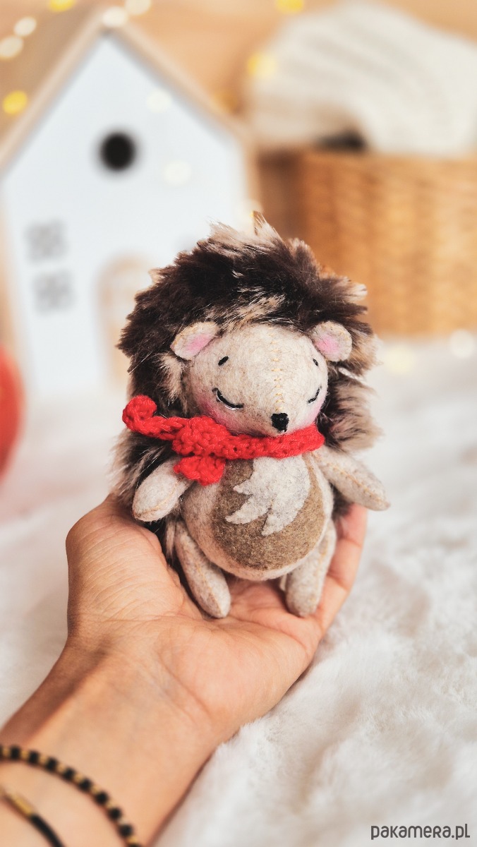 Jeżyk Felek, to kolejna zabawka, która dołączyła do reszty leśnych zwierzątek. Felek jest mały, wykonany. Filcu wełnianego, ma czerwony szalik i wielkie serce.