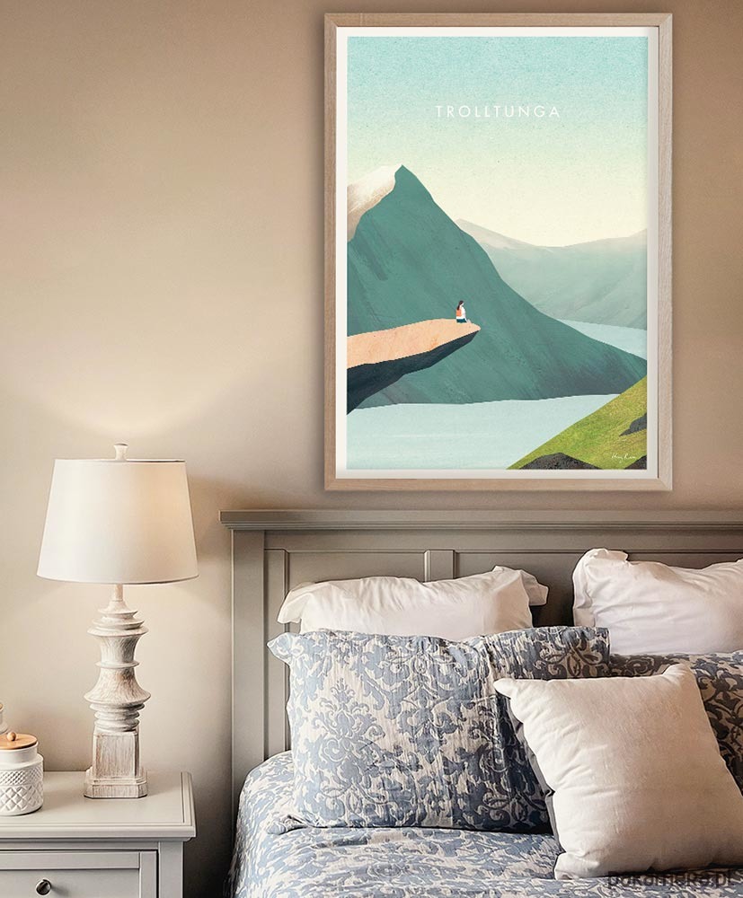 Plakat Trolltunga - Język Trolla - przedstawia norweskie skały, których niesamowite kształty pobudzają baśniową stronę wyobraźni. Północny krajobraz jak zawsze trochę srogi, trochę ascetyczny, ale z widokami, które zapierają dech.