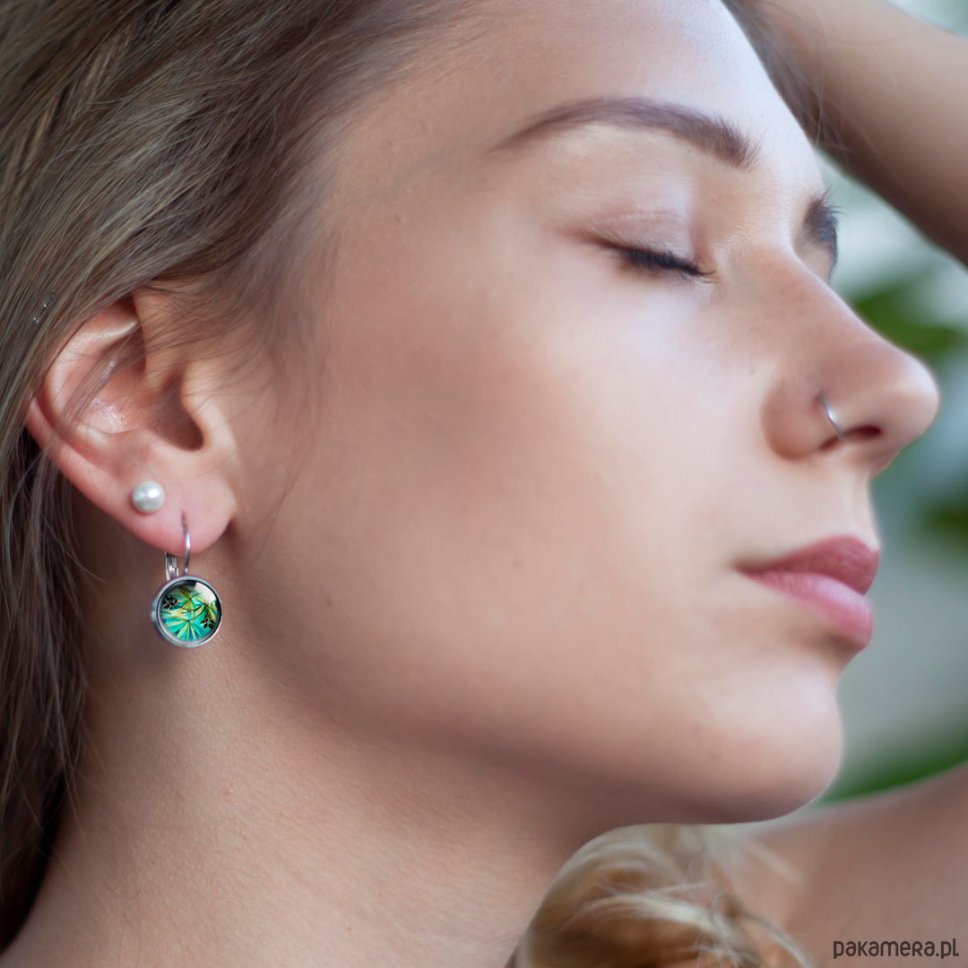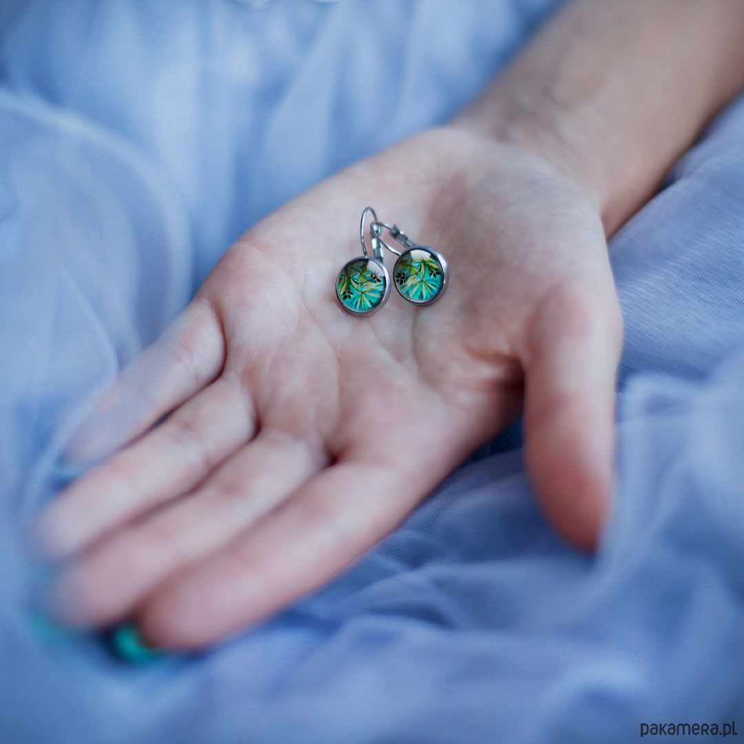 Unikatowe kolczyki wiszące z autorską ilustracją zatopioną pod szkiełkiem. Urocze malutkie ozdoby w pięknych kolorach, rewelacyjny prezent na każdą okazję!