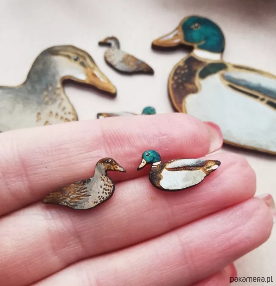 PLekkie kolczyki-sztyfty wykonane na podstawie autorskiego rysunku. Zrobione z drewna i lakierowane. Każda para będzie niepowtarzalna. Wielkość ok 2cm długości. Sztyfty nie uczulą, bo są z silikonu!