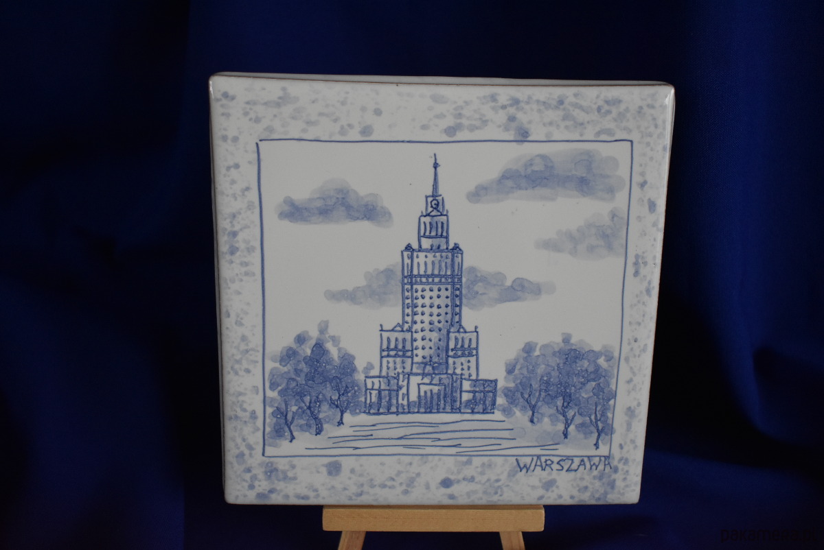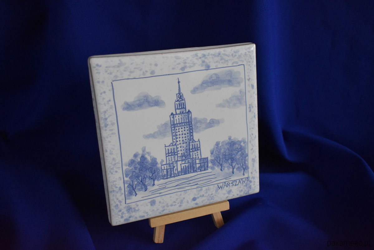 Kafel ręcznie malowany Pałac kultury i Nauki Warszawa z ramką nakrapianą
