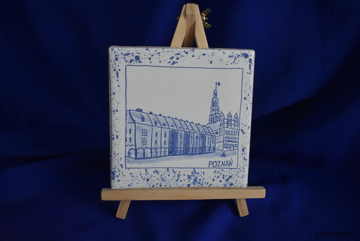 Unikatowy, ręcznie malowany kafel przedstawiający poznański ratusz i domki budnicze – symbol serca Poznania. Każdy egzemplarz powstaje w mojej pracowni, gdzie tradycyjną metodą majoliki nanoszę wzór na białe szkliwo, a następnie wypalam go w temperaturze ponad 1000°C.
