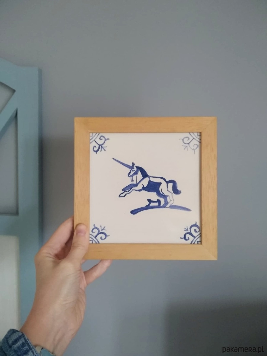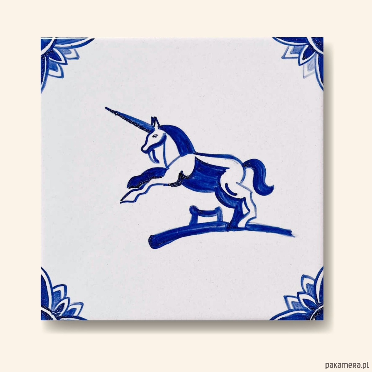 Kafelek ręcznie malowany z jednorożcem - holenderski