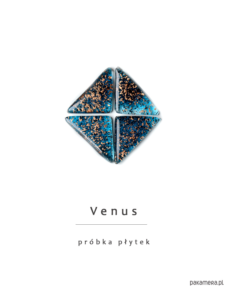 Zapraszamy do zapoznania się z płytkmami, stosowanymi w mozaice Venus. Próbka zawiera 4 trójkątne elementyna siatce mozaikowej. Wzór pozwala zapoznać się ze sposobem wykonania, ocenić jak płytki wyglądają we wnętrzu Państwa mieszkania i co najważniejsze, obejrzeć jak szkło i złoto mienią się w świetle.
