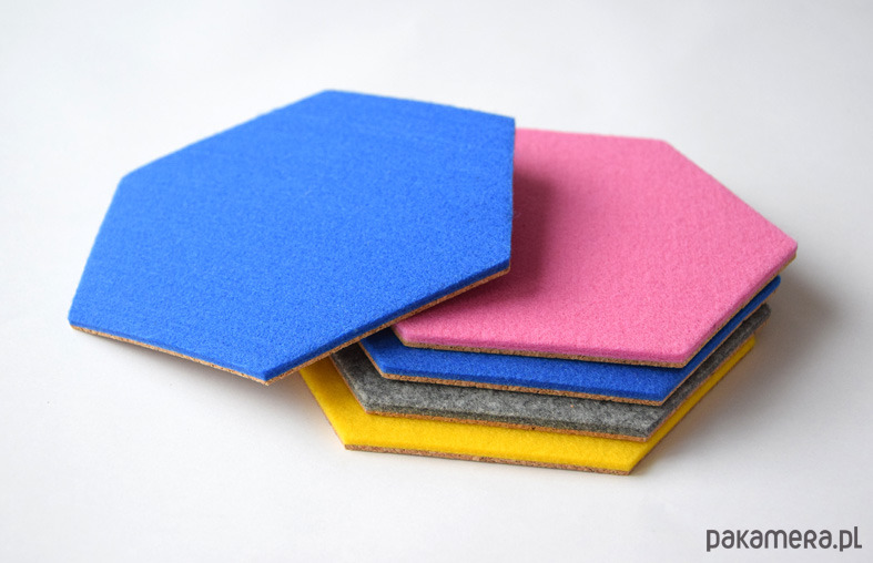 Wyjątkowe panele z filcu i korka. Możesz stworzyć z nich fajną kompozycję na ścianie lub użyć jako podkładek na stół.