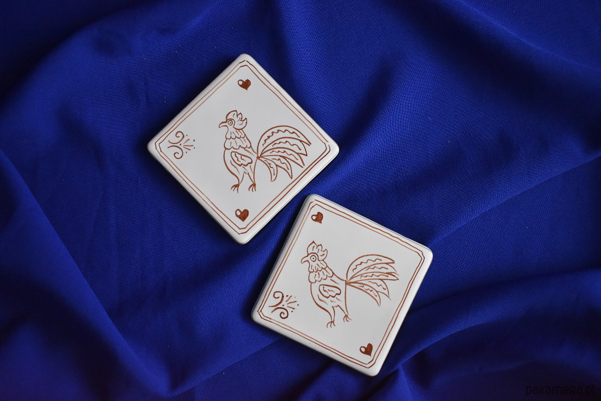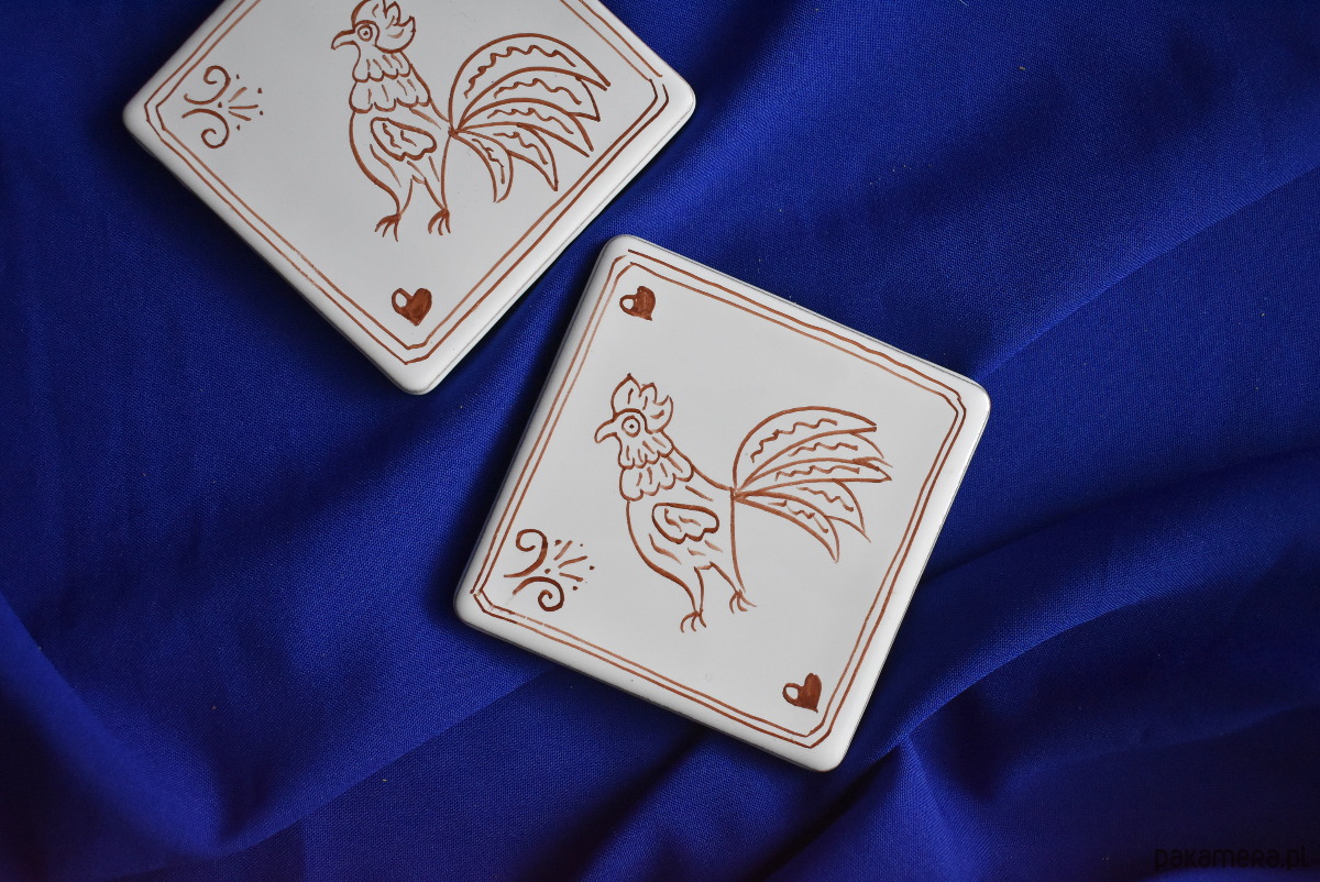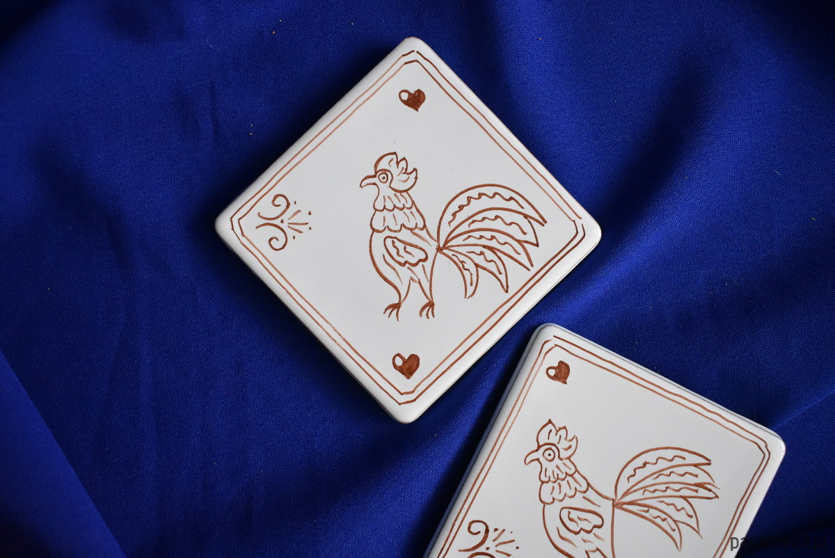 Kafle ręcznie malowane- Rustykalne podkładki kogutki