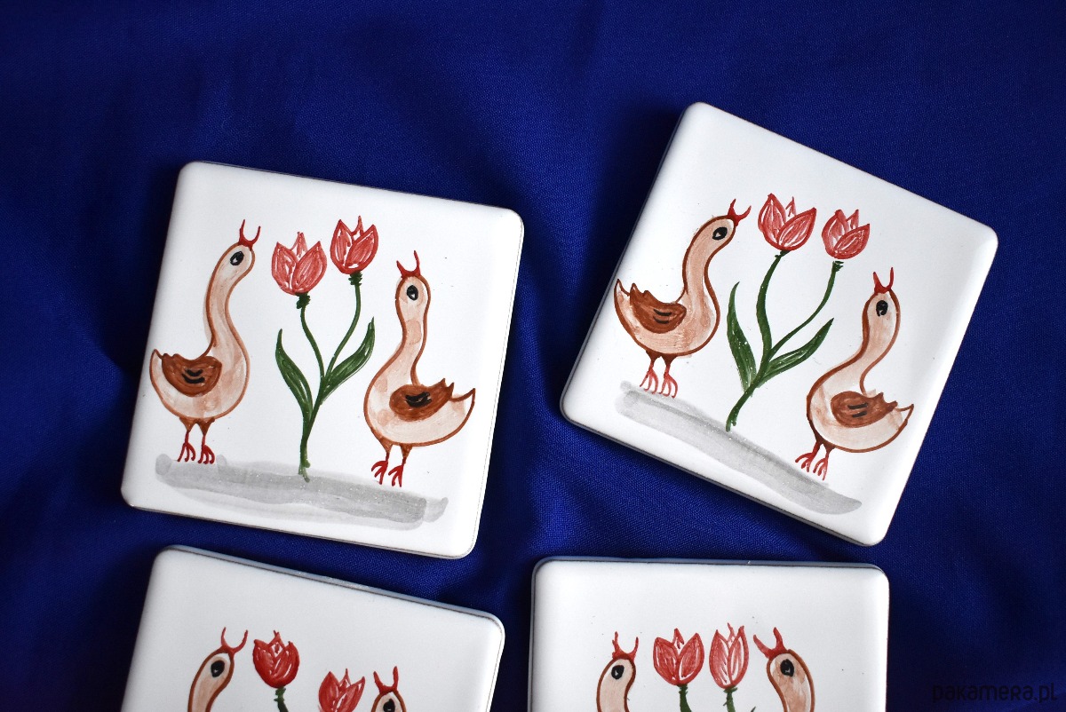 Kafle ręcznie malowane- Rustykalne podkładki kurki TULIPANY
