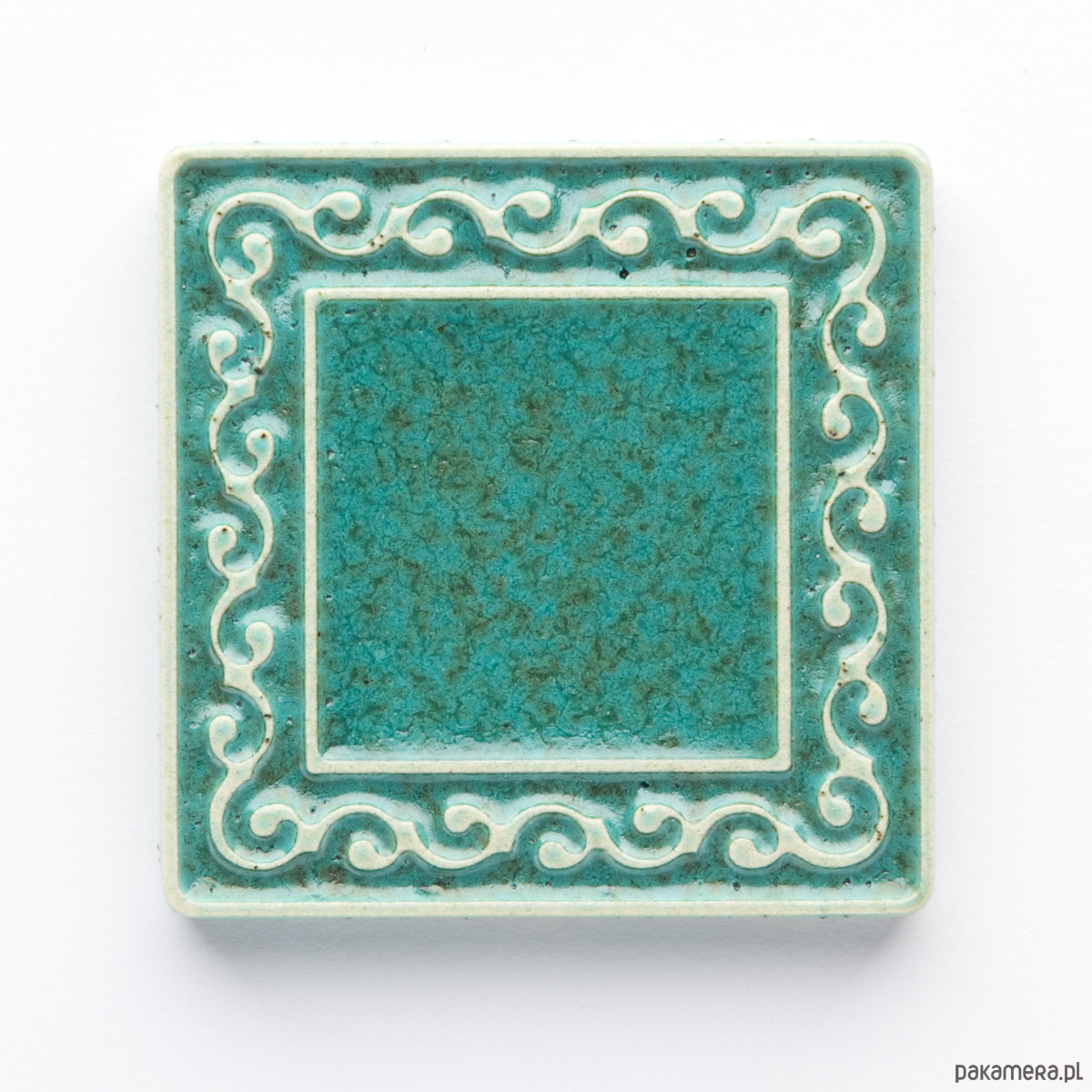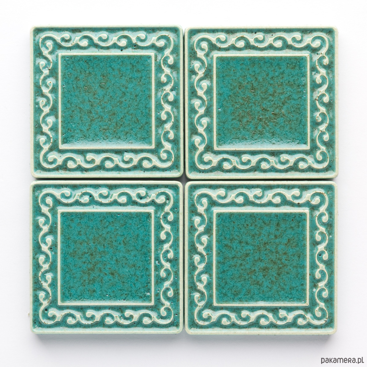 Kafle ceramiczne ręcznie robione z lekko wypukłymi, misternymi ornamentami. Zestaw 4 kafli ręcznie wykonanych z jasnej gliny, pokrytych szkliwem o satynowym połysku, dwukrotnie wypalanych w wysokiej temperaturze. Kafle są odporne na wodę, ścieranie, wysokie i niskie temperatury. Montaż jak kafli standardowych. Zastosowanie: do kuchni , do łazienki, na kominek, na ramę lustra itp.