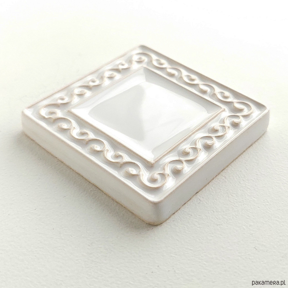 Kafle ceramiczne ręcznie robione, ścienne z lekko wypukłymi, misternymi ornamentami. Zestaw 4 kafli. Wykonane z jasnej gliny. Pokryte błyszczącym szkliwem, w sposób który odpowiednio podkreśla ozdobny wzór arabeskowej powierzchni. Dwukrotnie wypalane w wysokiej temperaturze. Odporne na wodę, ścieranie, wysokie i niskie temperatury. Montaż kafli standardowy. Na zamówienie istnieje możliwość wykonania większej ilości podobnych.