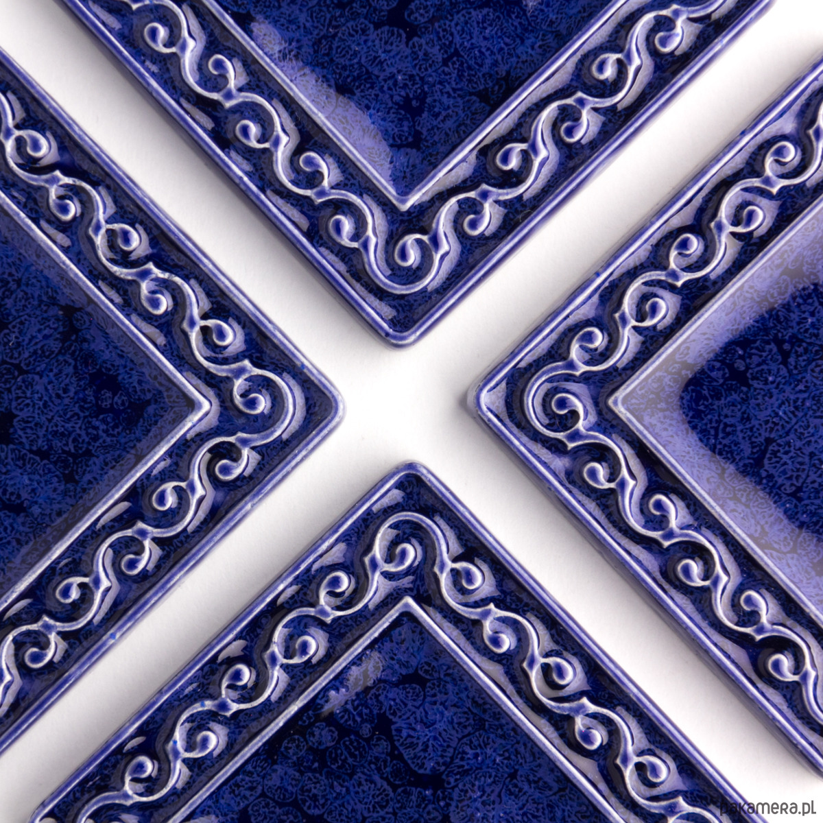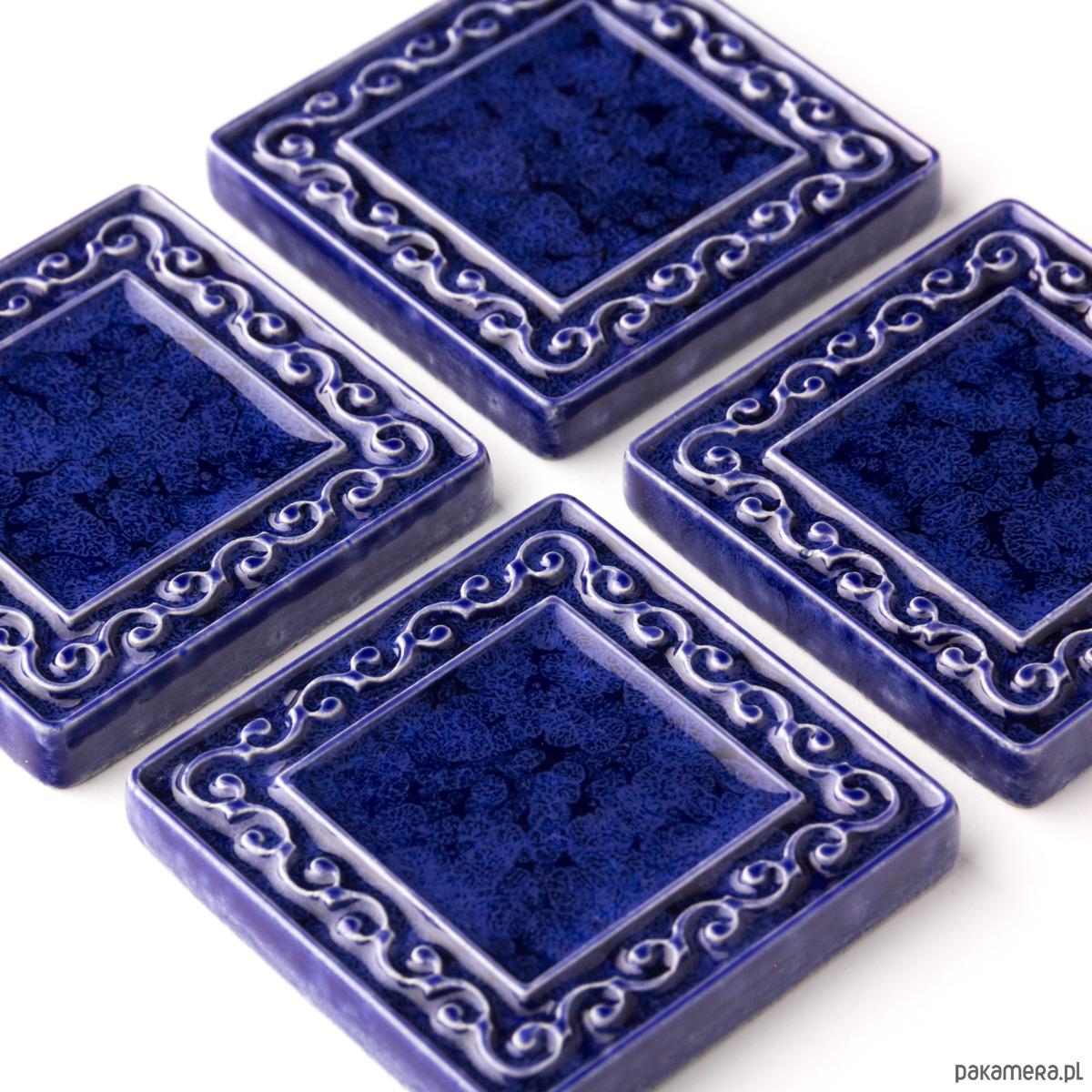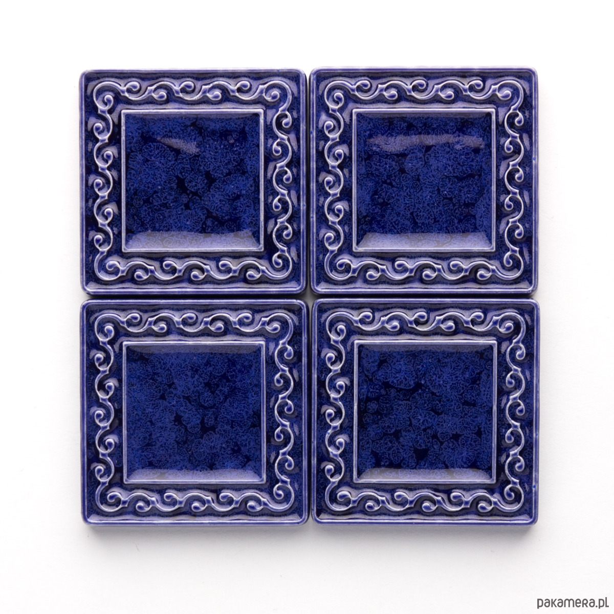 Kafle ceramiczne ręcznie robione, ścienne z lekko wypukłymi, misternymi ornamentami. Zestaw 4 kafli. Wykonane z jasnej gliny. Pokryte błyszczącym szkliwem, w sposób który odpowiednio podkreśla ozdobny wzór arabeskowej powierzchni. Dwukrotnie wypalane w wysokiej temperaturze. Odporne na wodę, ścieranie, wysokie i niskie temperatury. Montaż kafli standardowy. Na zamówienie istnieje możliwość wykonania większej ilości podobnych.