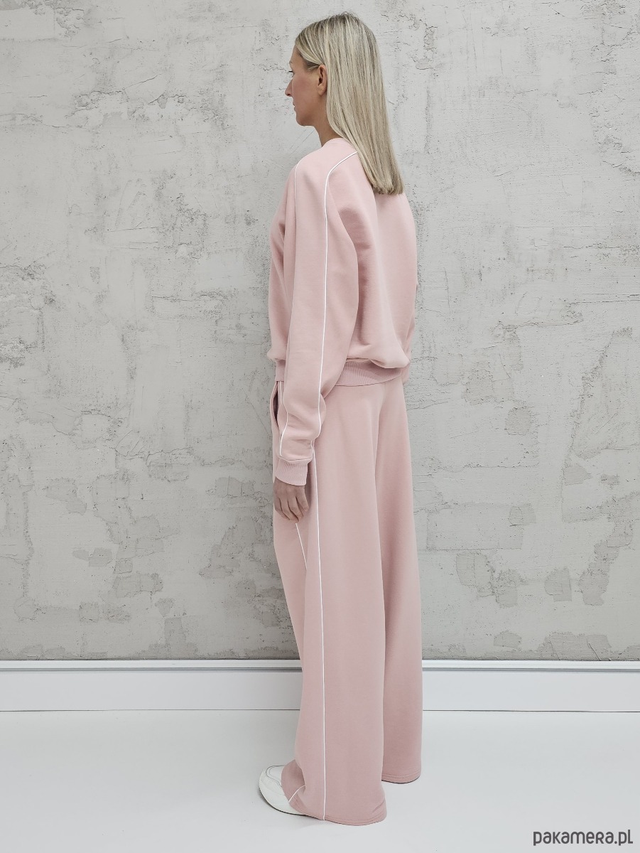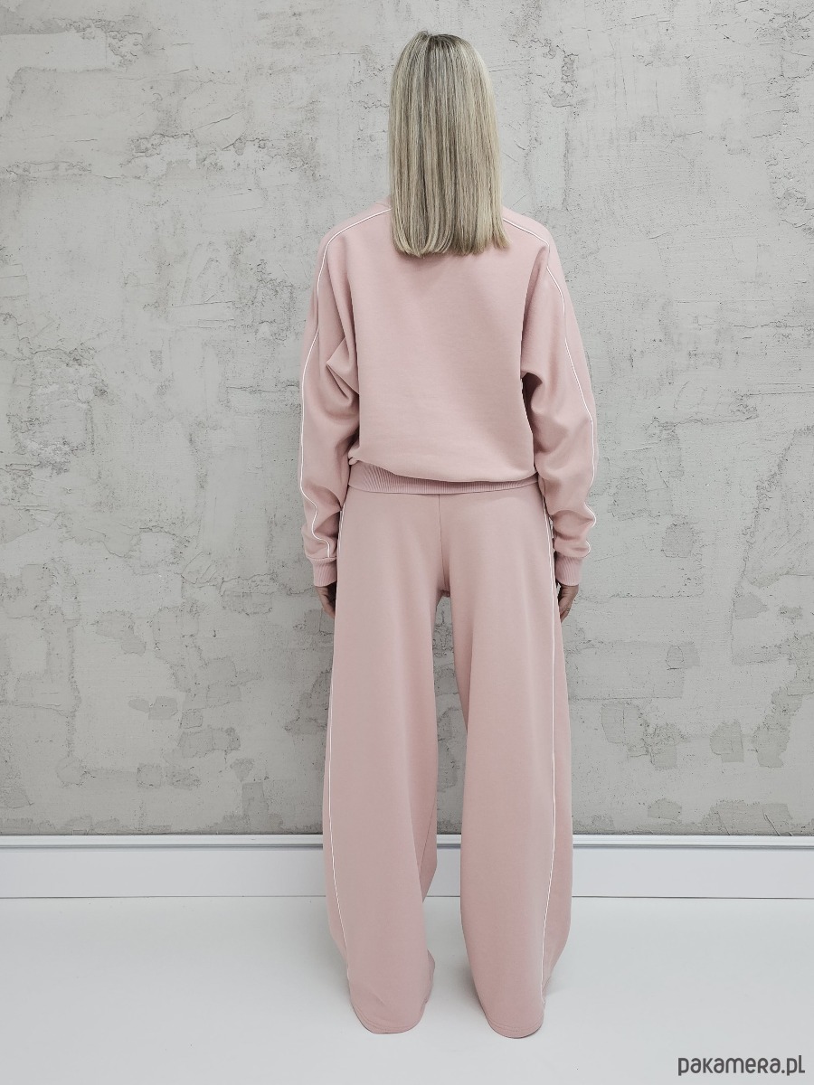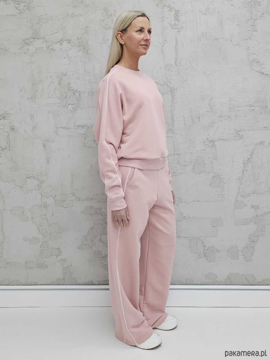 OPIS PRODUKTU- Komfortowy komplet uszyty z naszego sygnowanego materiału superSOFT™. Komplet obejmuje luźną, bardzo wygodną bluzę oraz spodnie o luźnym kroju z szerokimi nogawkami. Bluza i spodnie z lamówkami.