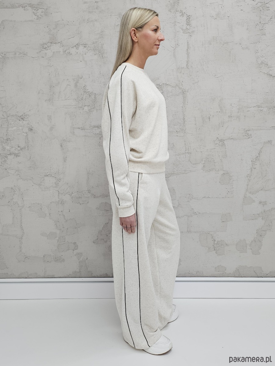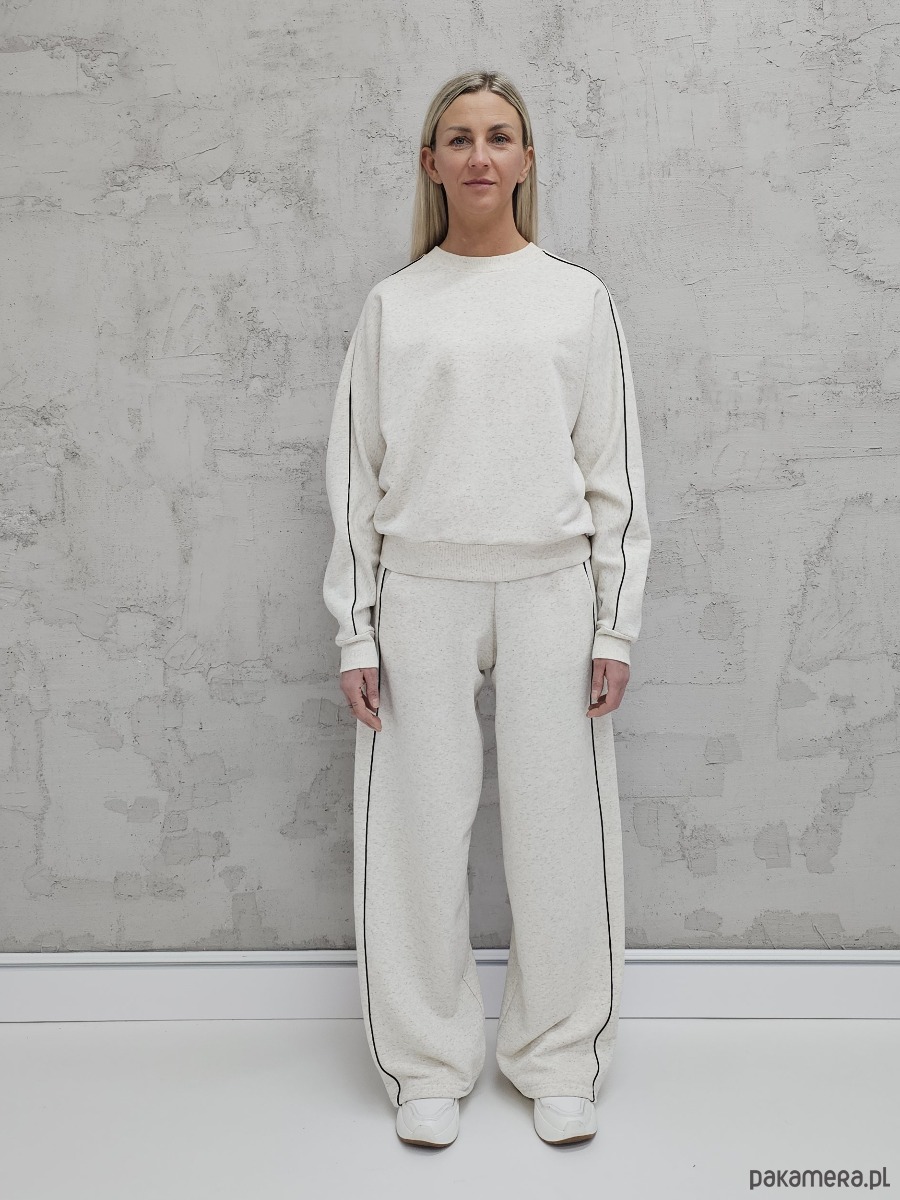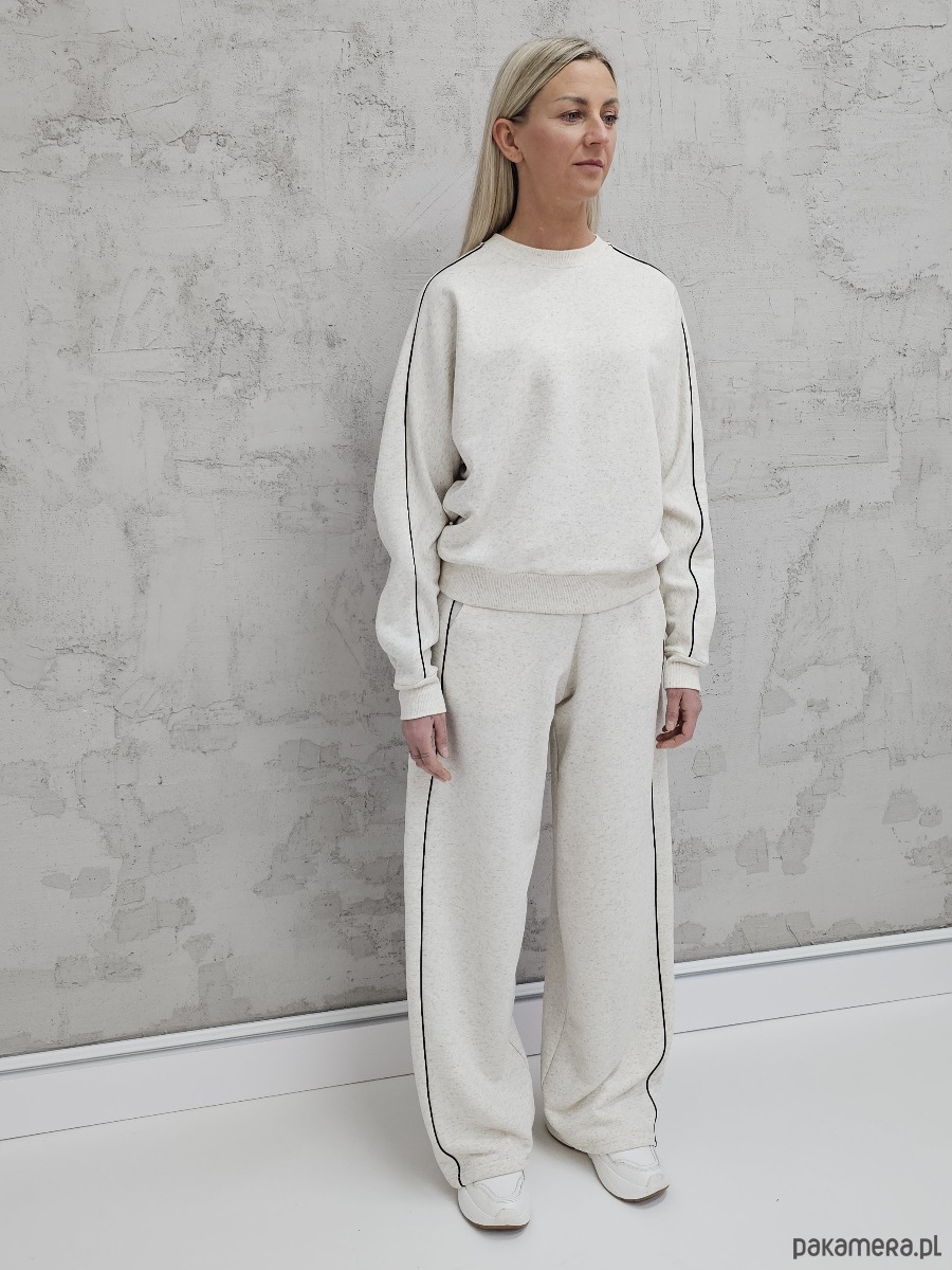 OPIS PRODUKTU- Komfortowy komplet uszyty z naszego sygnowanego materiału superSOFT™. Komplet obejmuje luźną, bardzo wygodną bluzę oraz spodnie o luźnym kroju z szerokimi nogawkami. Bluza i spodnie z lamówkami.