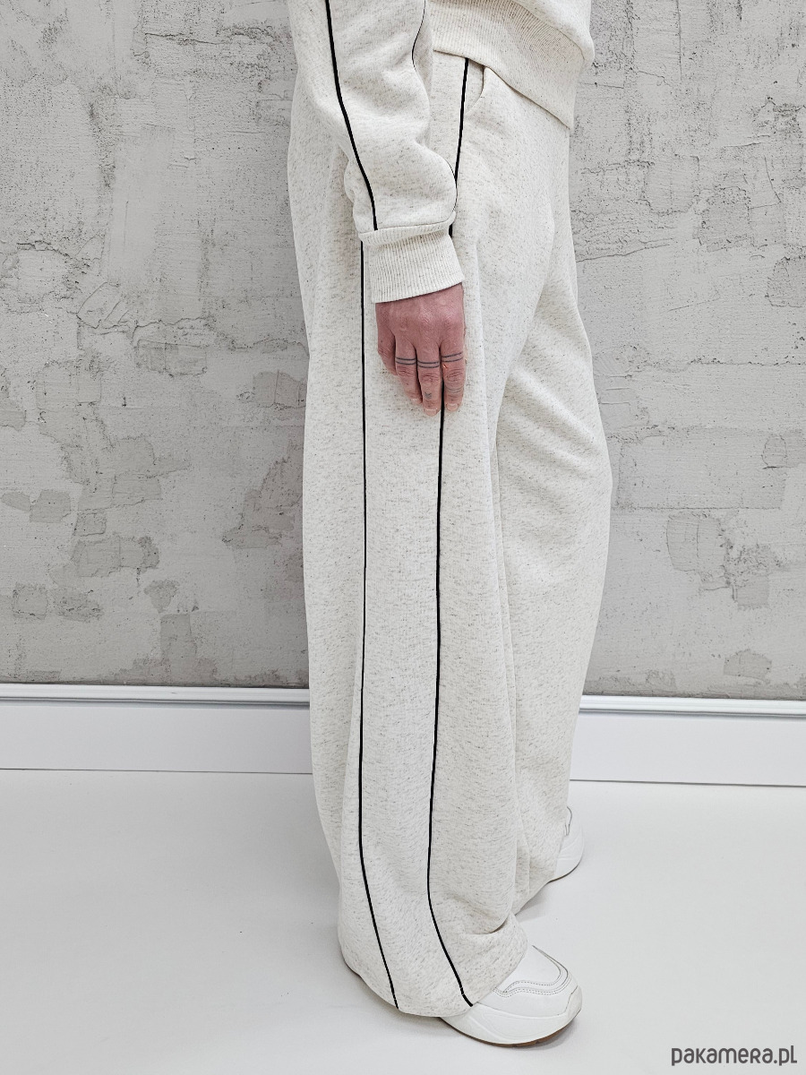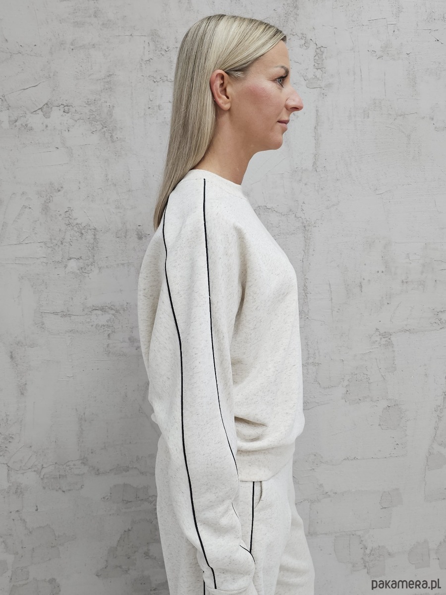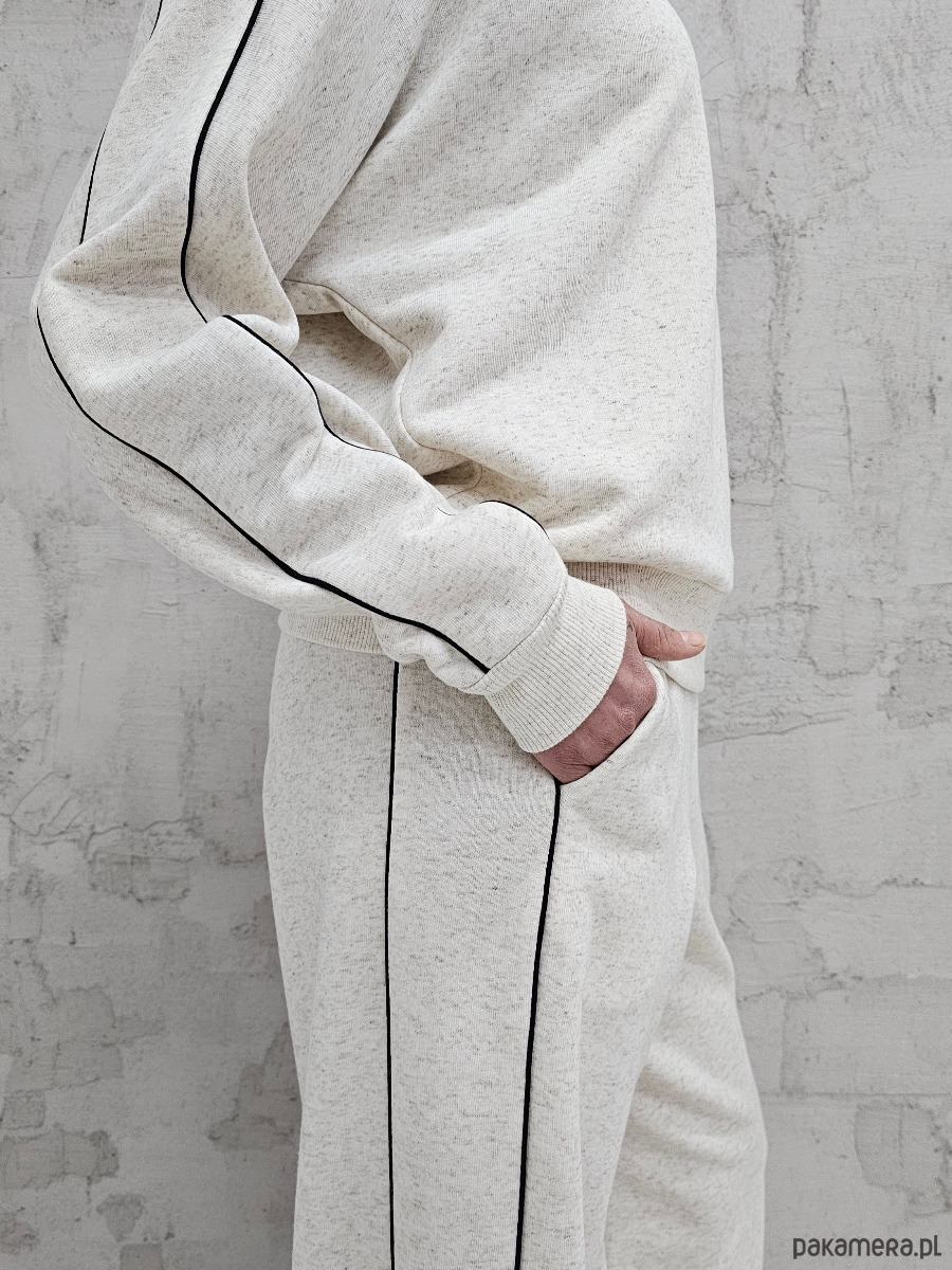 OPIS PRODUKTU- Komfortowy komplet uszyty z naszego sygnowanego materiału superSOFT™. Komplet obejmuje luźną, bardzo wygodną bluzę oraz spodnie o luźnym kroju z szerokimi nogawkami. Bluza i spodnie z lamówkami.