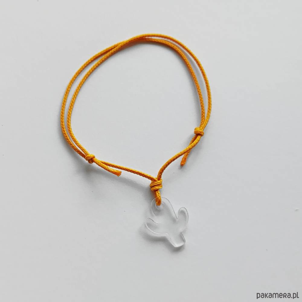 KAKTUS bransoletka- zabawny dodatek. Ciekawy dodatek przykuwają uwagę i zaskakuje wzornictwem. Taka bransoletka sprawi, że każda stylizacja nabierze niepowtarzalnego, fantazyjnego charakteru. Bransoletka wykonana jest z : tworzywo sztuczne, ozdobny sznurek. Tworzywo sztuczne- przezroczyste. Długość zawieszki 1,5 cm. Szeroko – 1,2 cm.