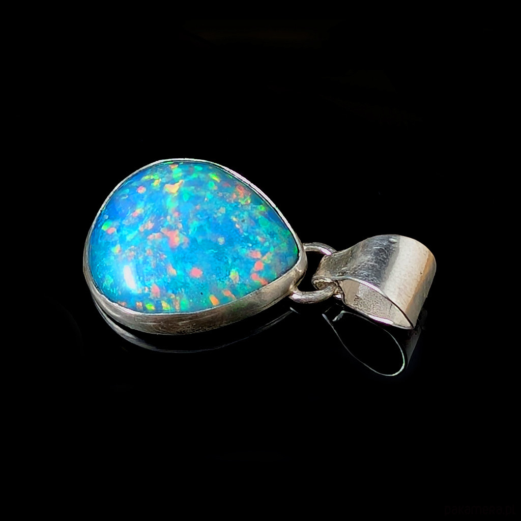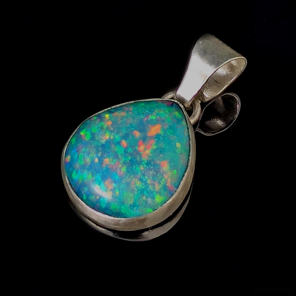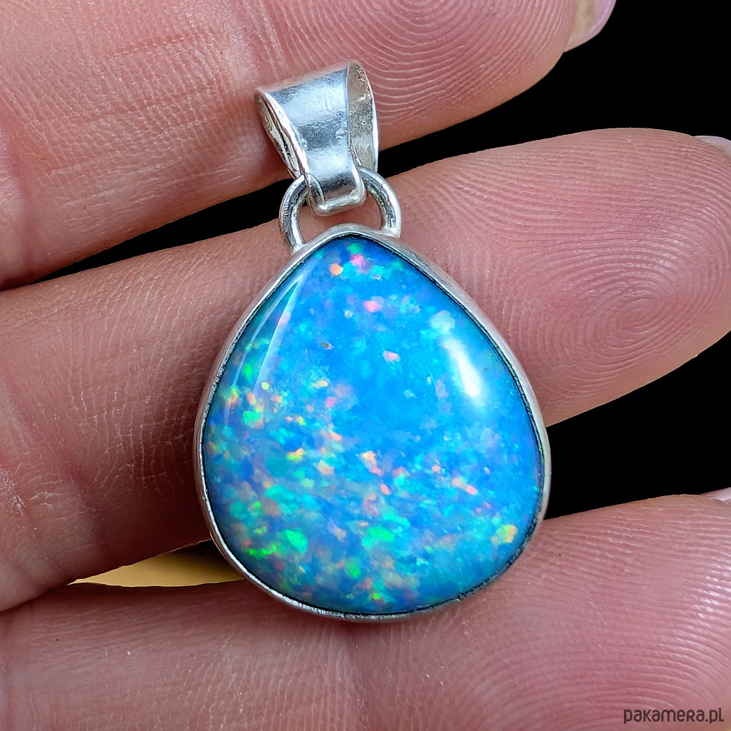 Bardzo efektowny wisiorek z oprawionym w srebro próby 925 pięknym, szlachetnym opalem etiopskim najwyższej jakości.