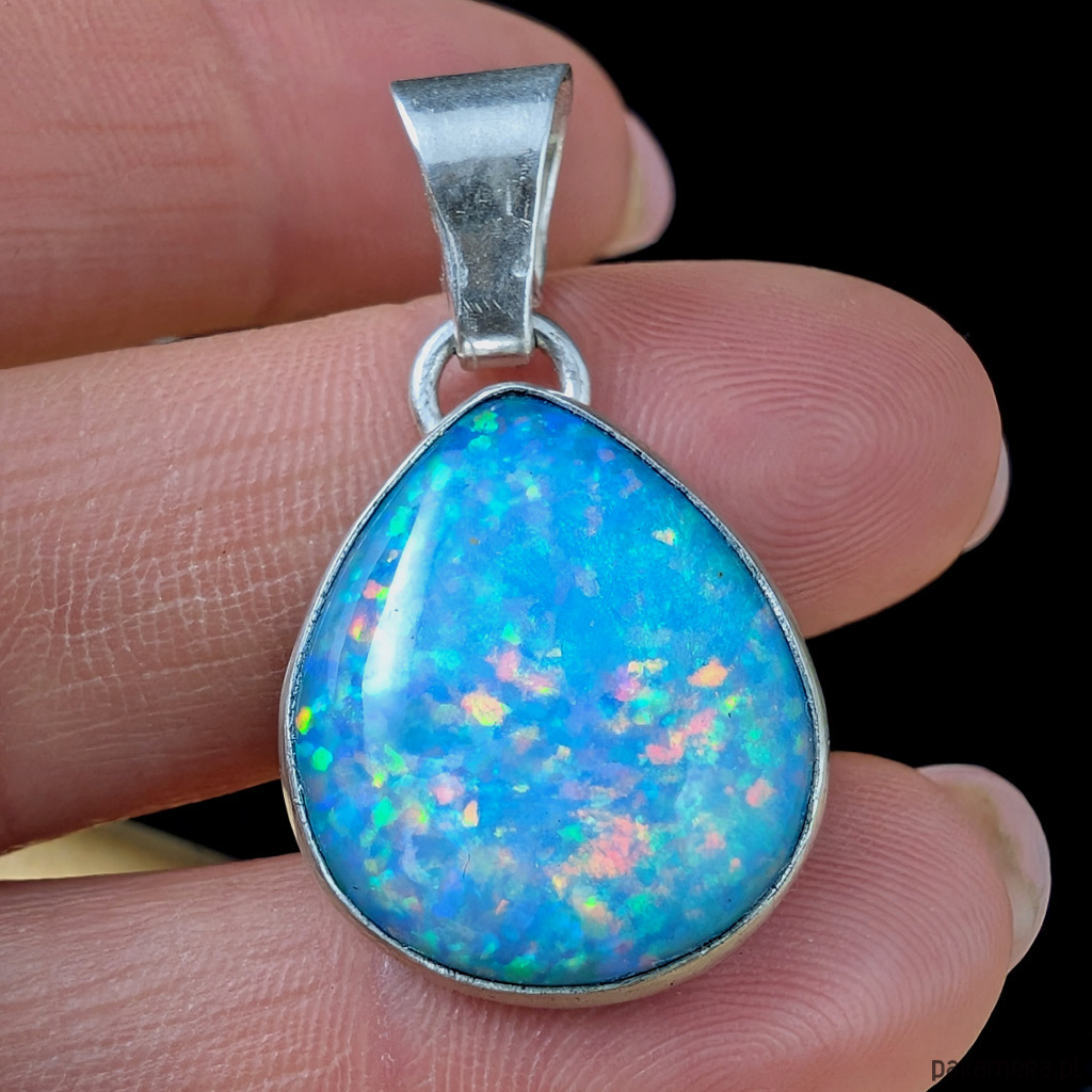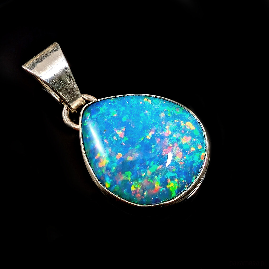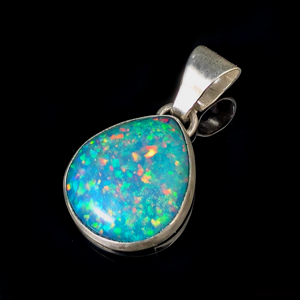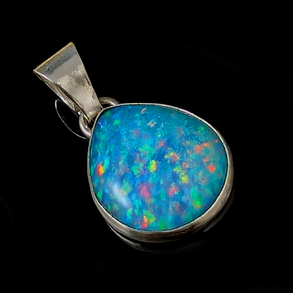 Bardzo efektowny wisiorek z oprawionym w srebro próby 925 pięknym, szlachetnym opalem etiopskim najwyższej jakości.