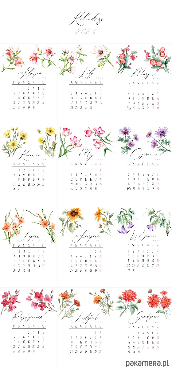 • Format A6 (105mm x 148mm) - karty z miesiącami