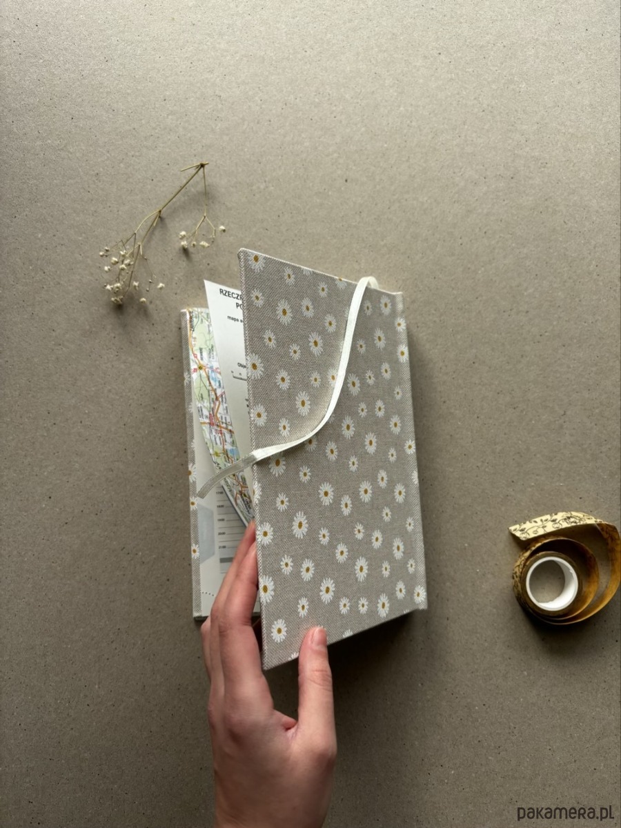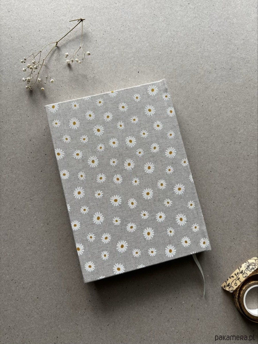 Ręcznie wykonany kalendarz w formacie A5 z materiałową okładką w stokrotki 🌼 .
