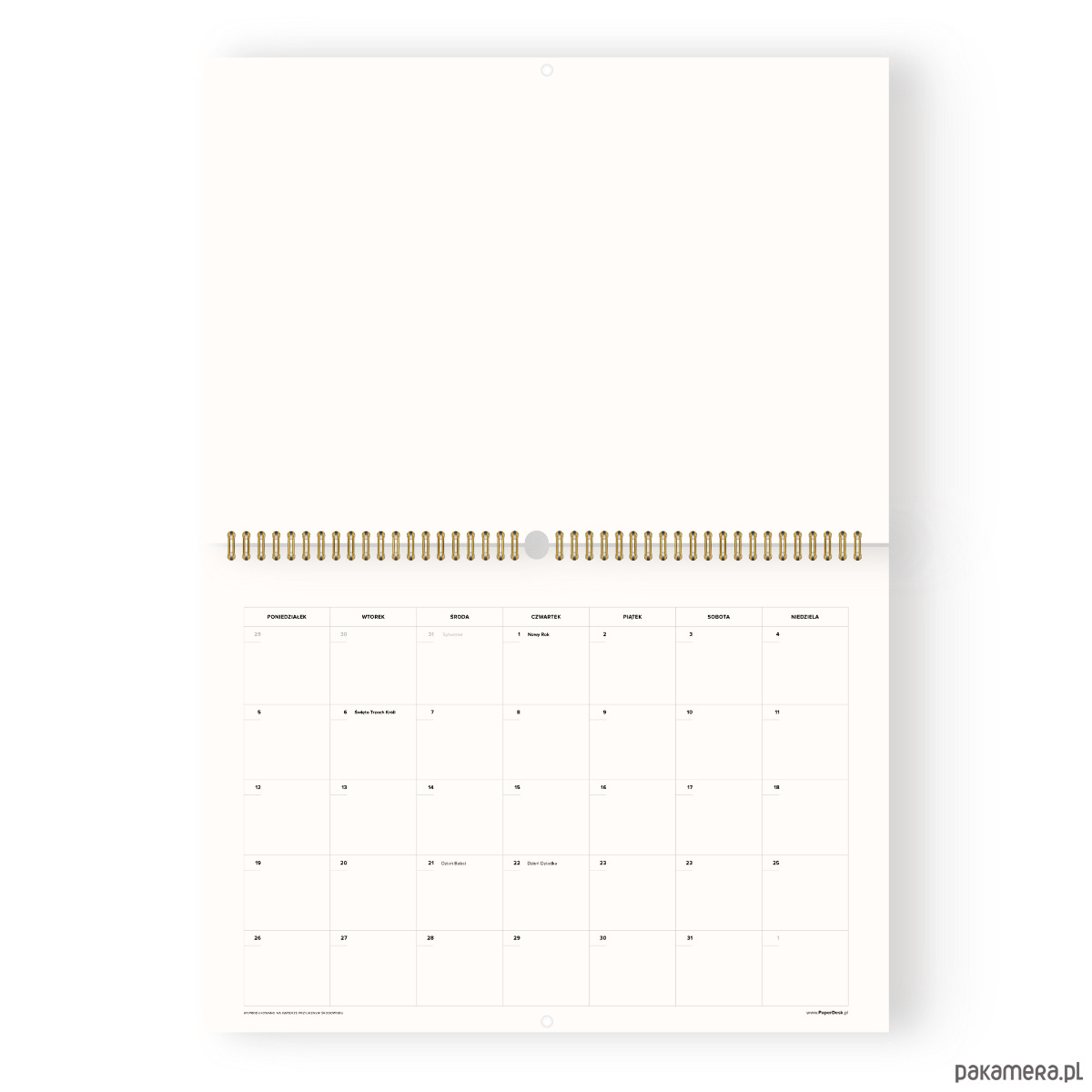 Kalendarz na spirali A3 pozwala łatwo zobaczyć cały miesiąc i cały rok.