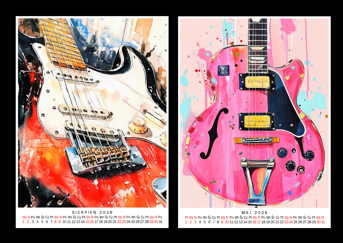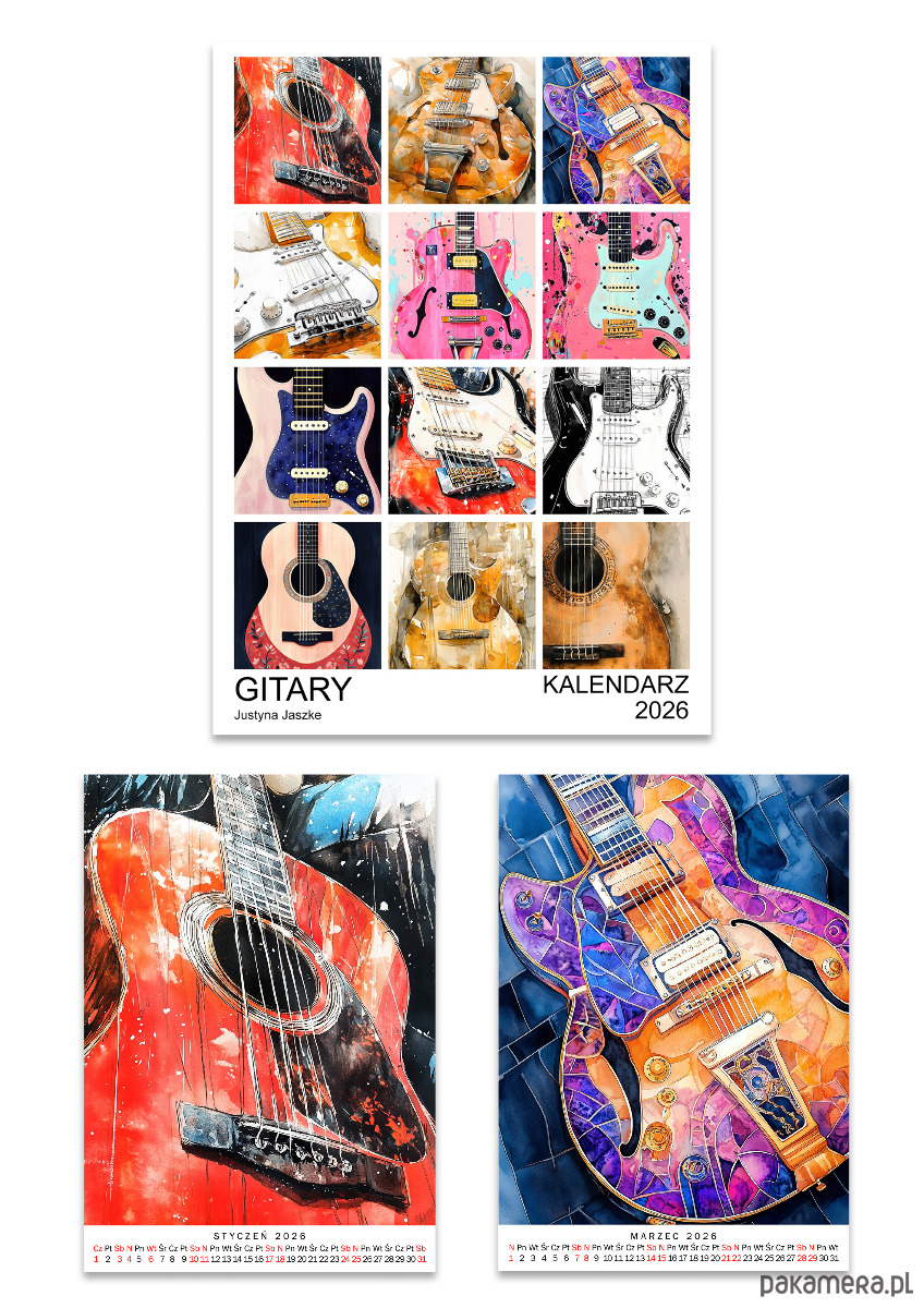 Autorski, oryginalny Kalendarz na 2026 r. - GITARY