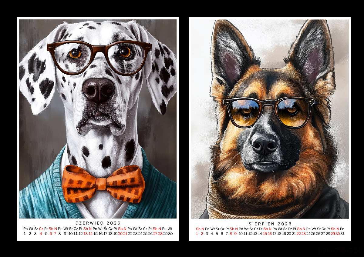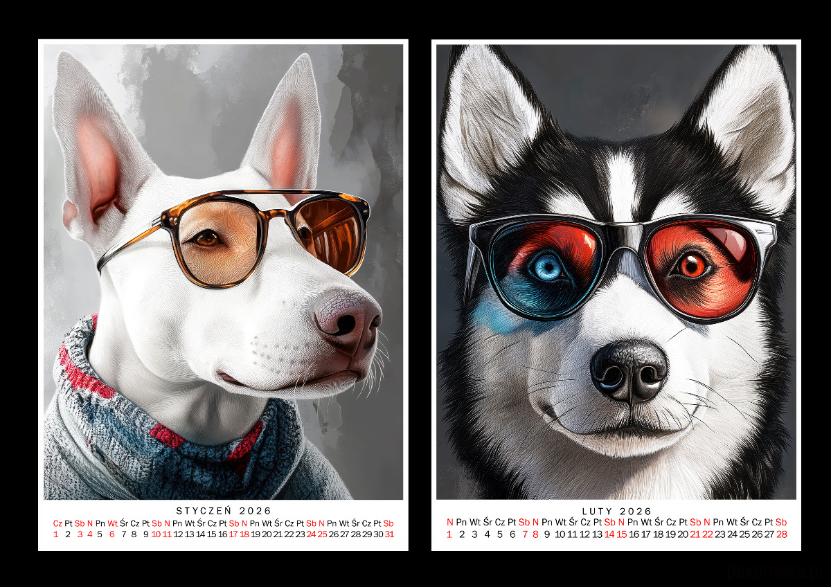 Autorski, oryginalny Kalendarz na 2026 r. - Hipsterskie Psy