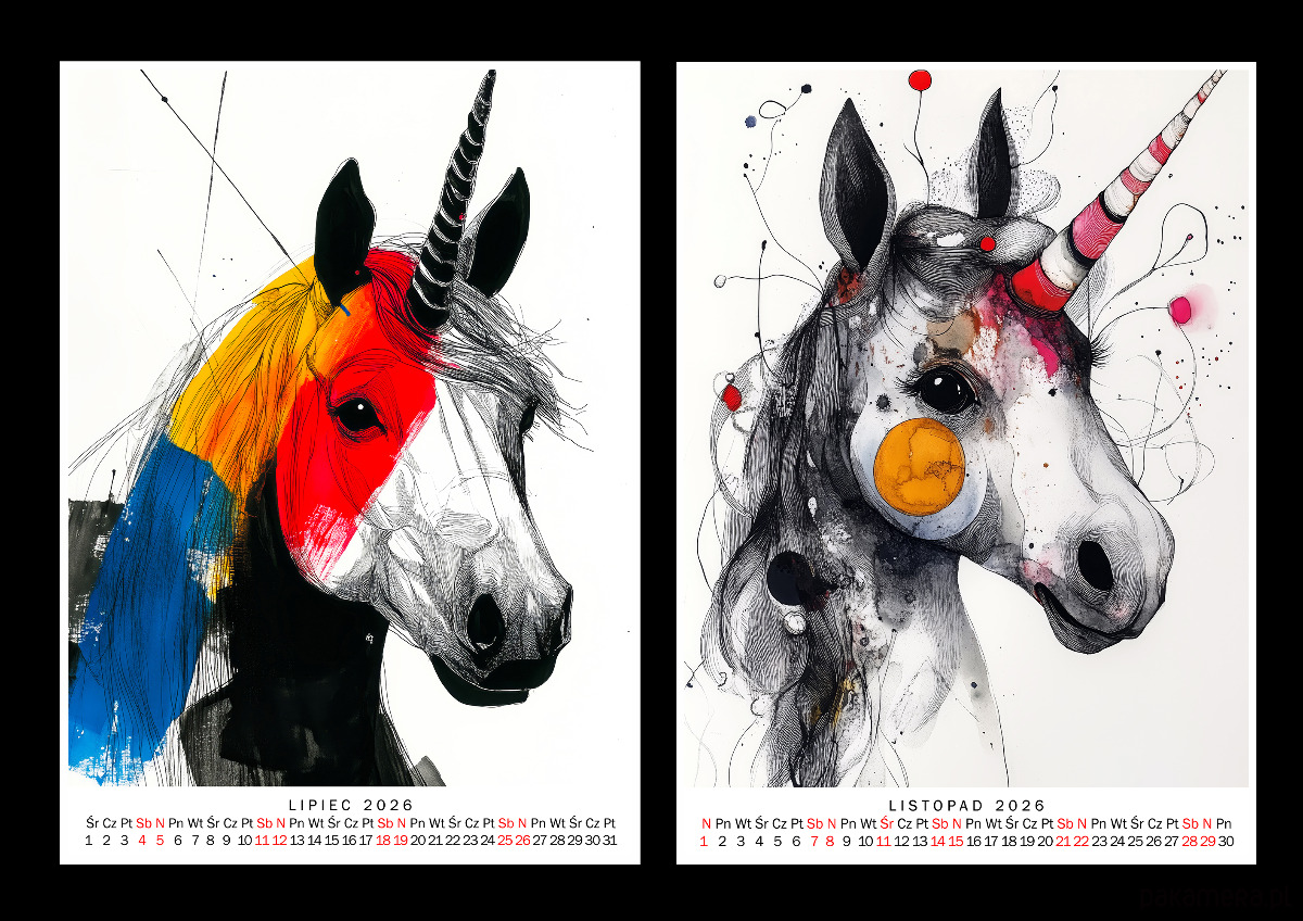 Autorski, oryginalny Kalendarz na 2026 r. - JEDNOROŻCE