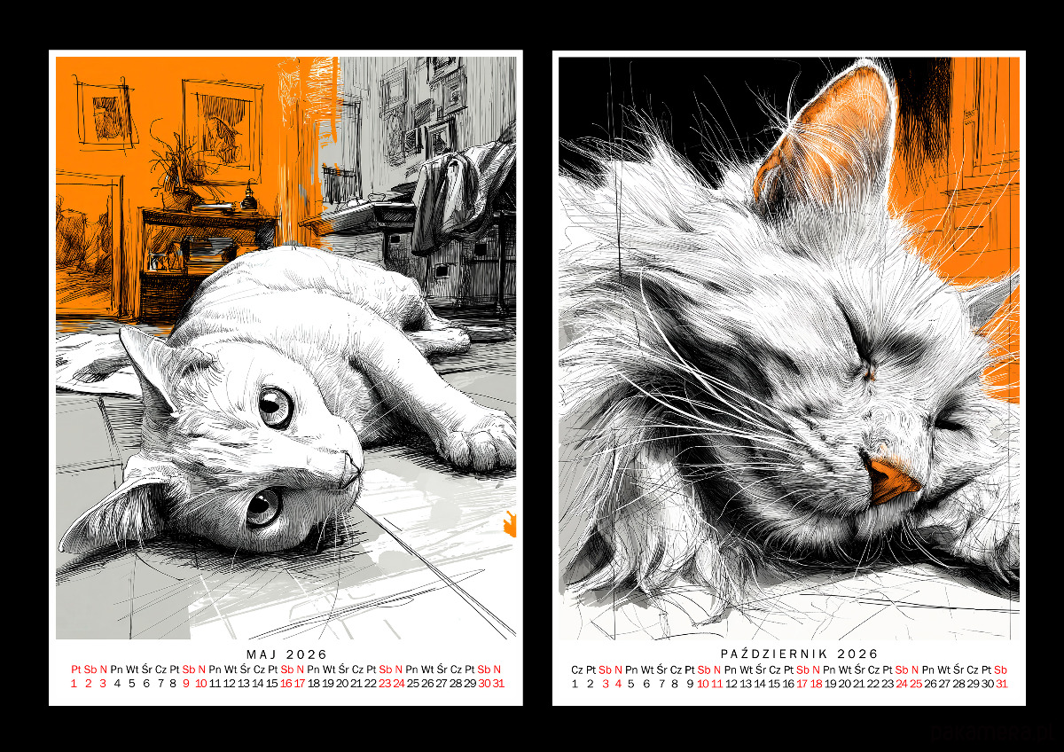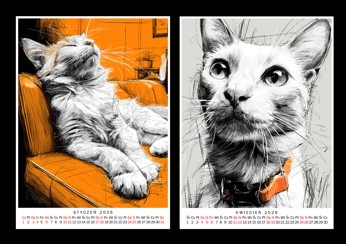 Autorski, oryginalny Kalendarz na 2026 r. - Kocie Życie