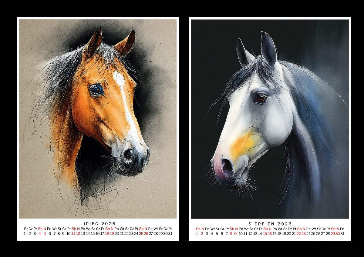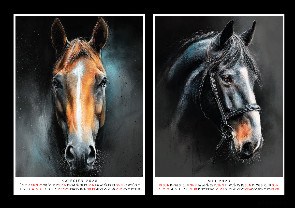 Autorski, oryginalny Kalendarz na 2026 r. - Konie