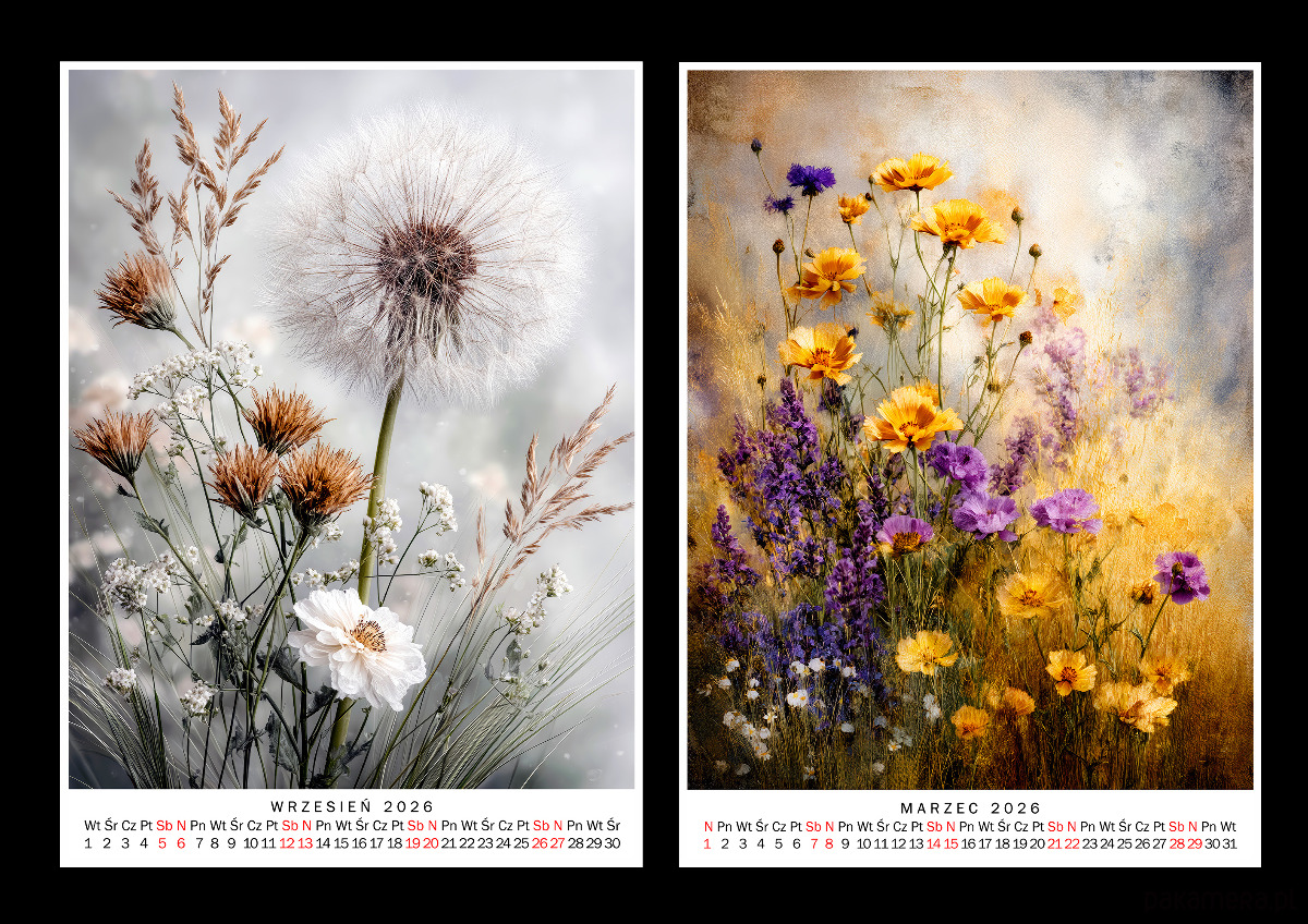 Autorski, oryginalny Kalendarz na 2026 r. - KWIECISTA ŁĄKA