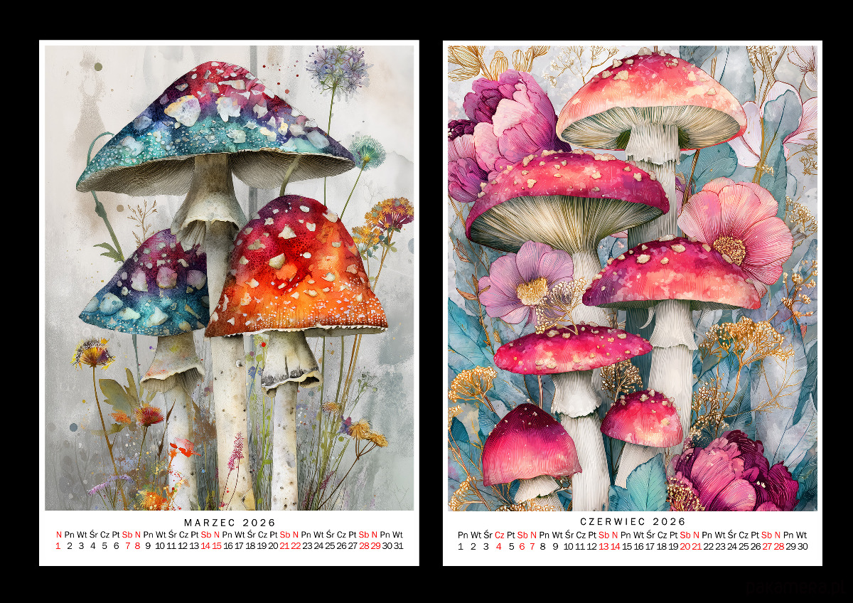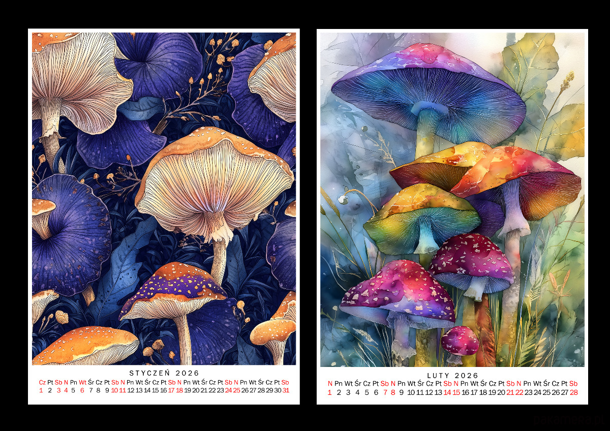 Autorski, oryginalny Kalendarz na 2026 r. - Magiczne grzybki