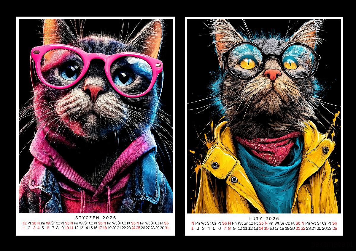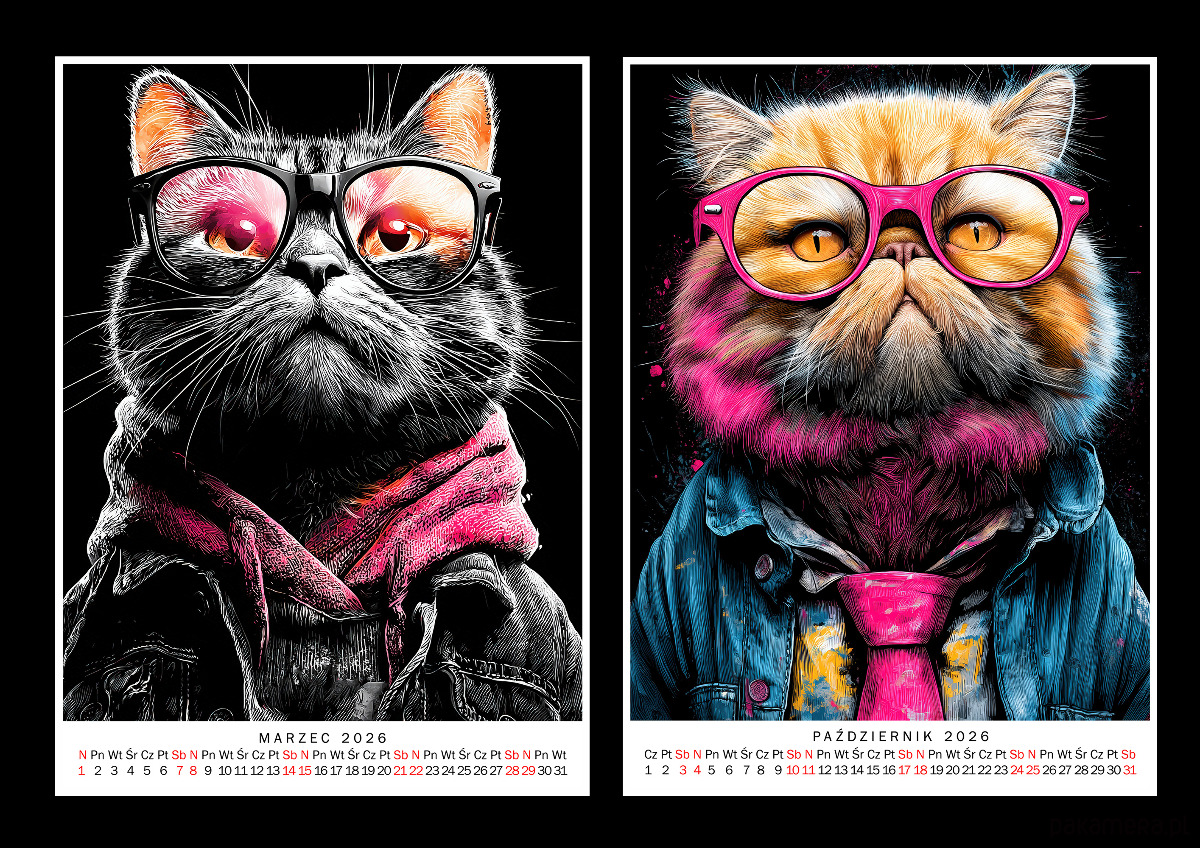 Autorski, oryginalny Kalendarz na 2026 r. - Miejskie Koty