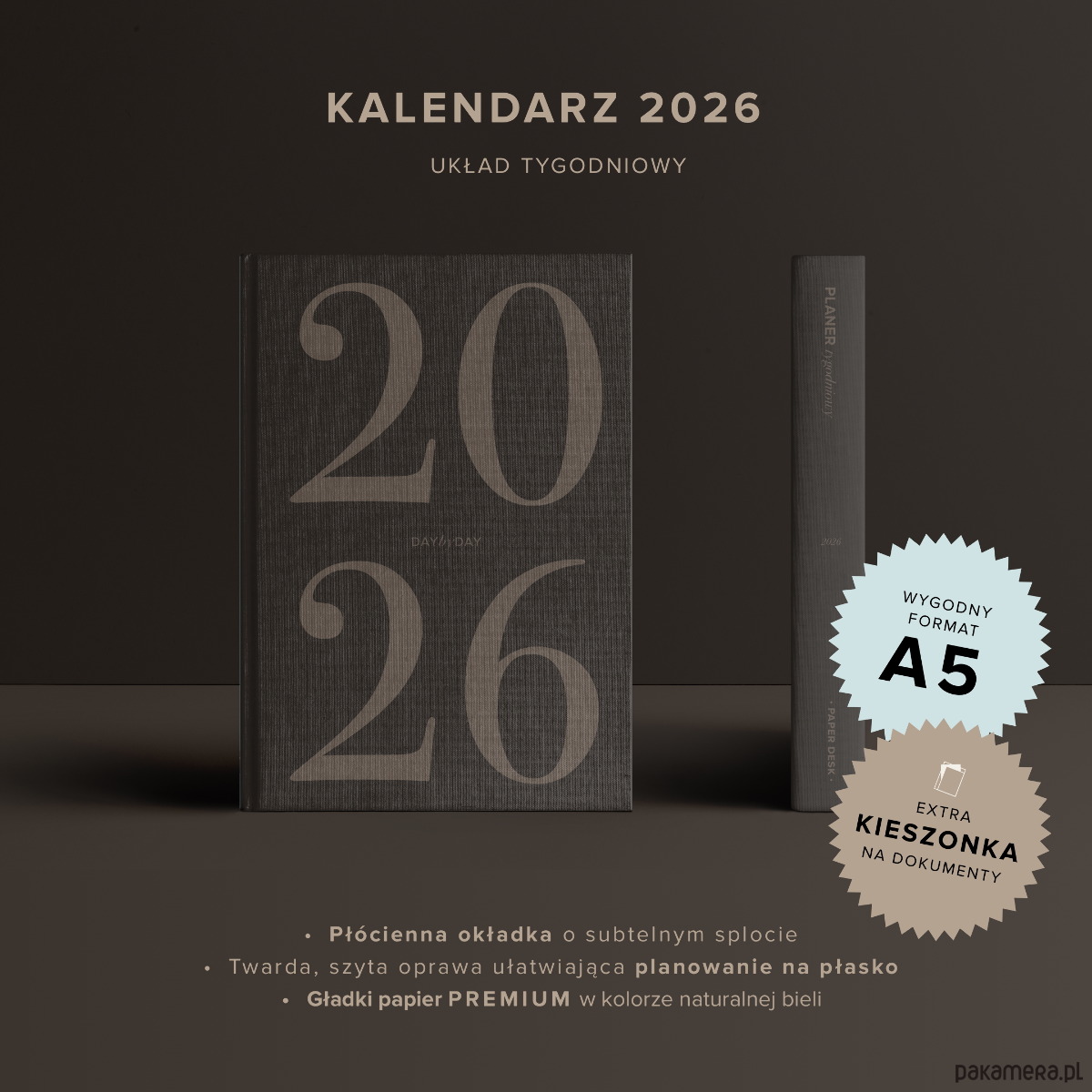 Kalendarz 2026 PaperDesk „Chocolate” powstał z myślą o osobach, które chcą przejść przez rok spokojniej, przejrzyściej i w swoim tempie. Minimalistyczny układ tygodniowy, papier premium i płócienna okładka tworzą przestrzeń, w której łatwiej się skupić, poukładać priorytety i zadbać o rytm dnia — nie tylko o listę zadań.