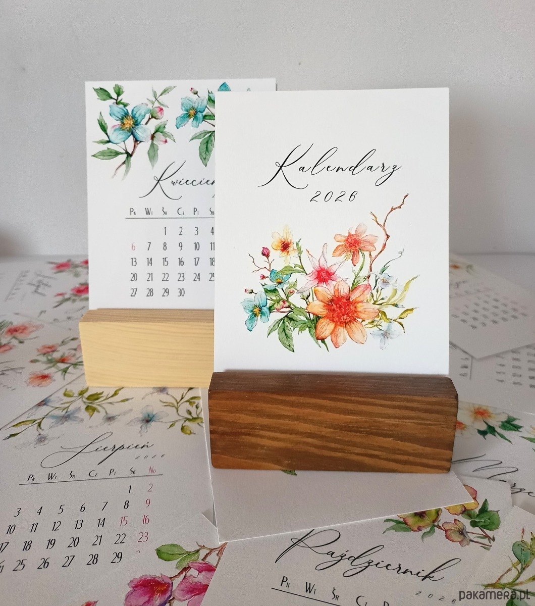 Kalendarz 2026 - na biurko z drewnianą podstawką