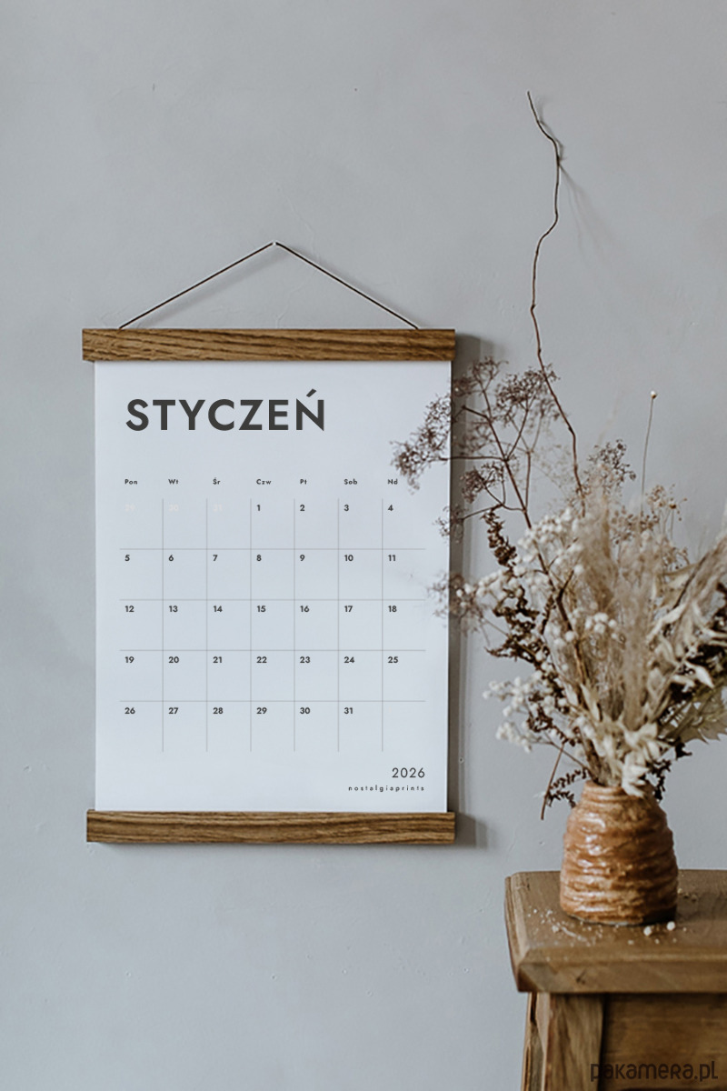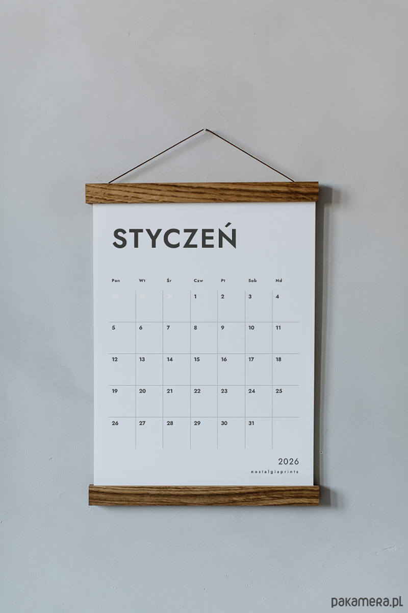 Kalendarz składa się z 12 kart wydrukowanych na papierze z delikatną fakturą oraz drewnianego wieszaka. Karty z początkiem każdego miesiąca umieszczamy w listewkach. Wieszak wykonany został przeze mnie ręcznie z wysokiej jakości drewna dębowego. Silne magnesy umieszczone wewnątrz listewek mocno trzymają kartę kalendarza, nie pozwalając jednocześnie na jej uszkodzenie. Kalendarz na 2026 rok w wersji polskiej.