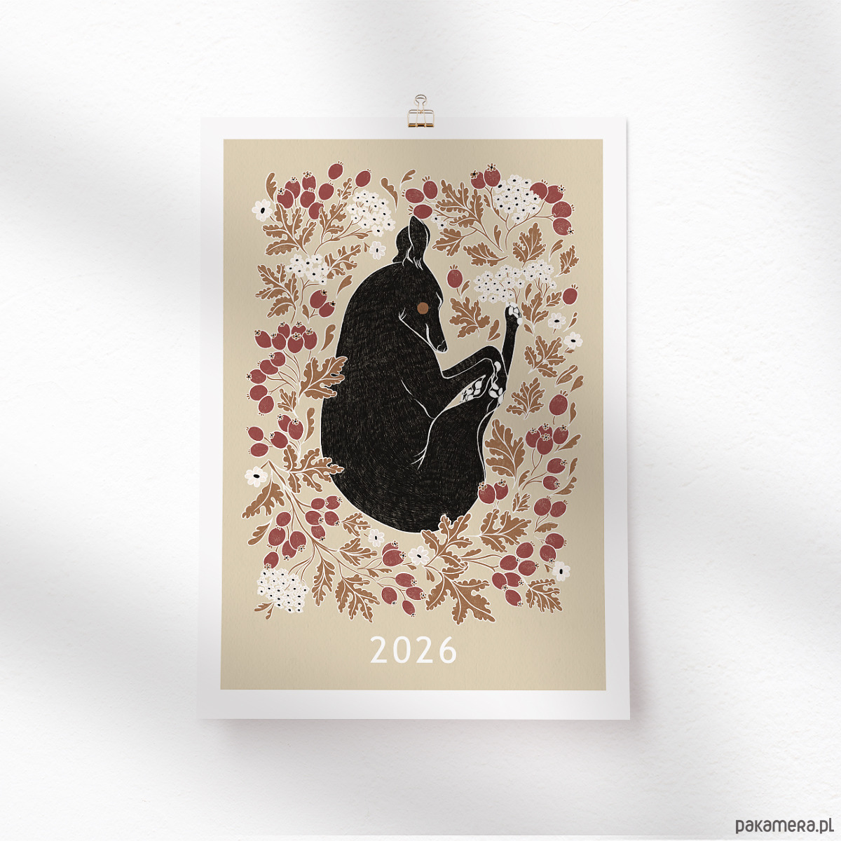 Kalendarz ścienny na 2026 rok dla miłośników psów i nie tylko.
