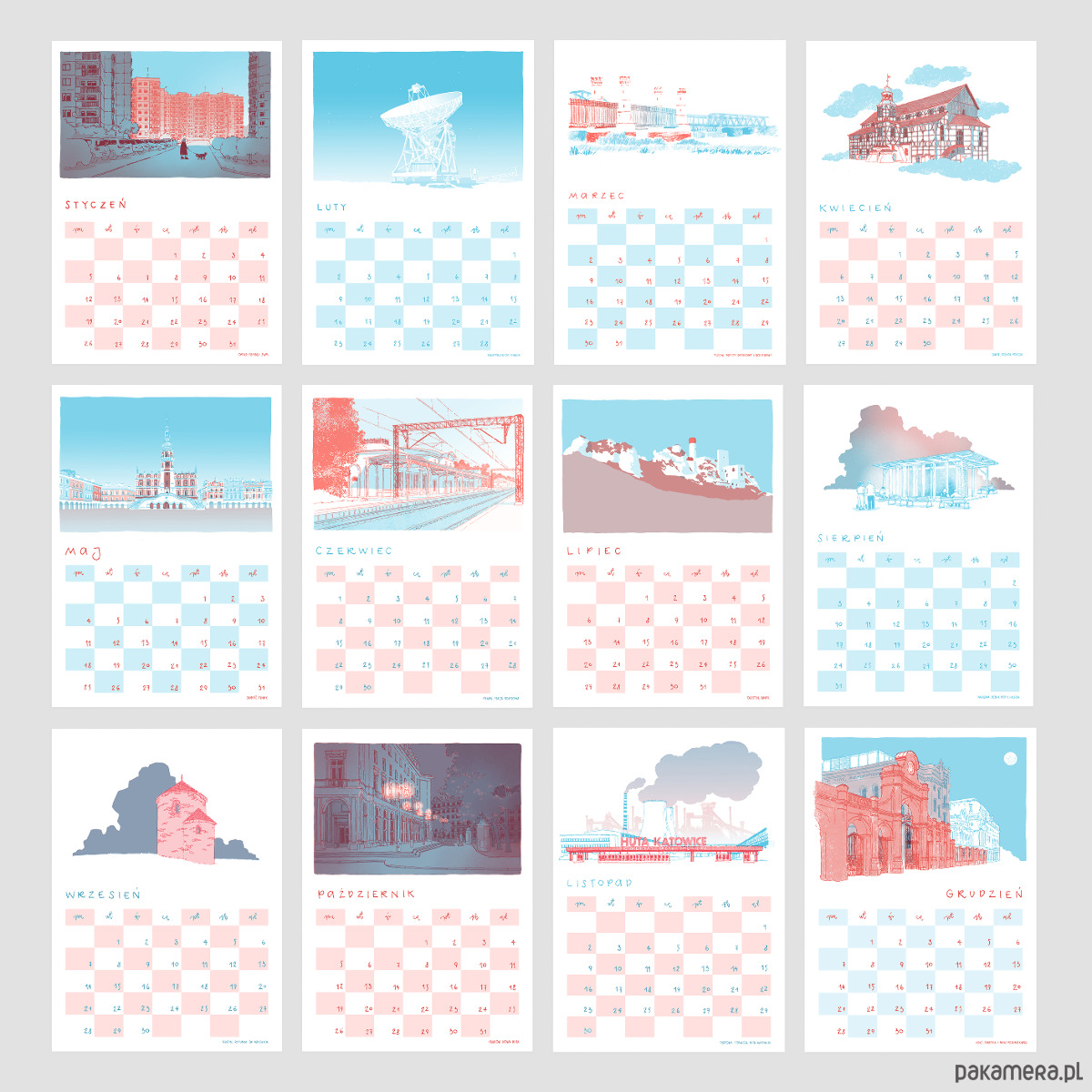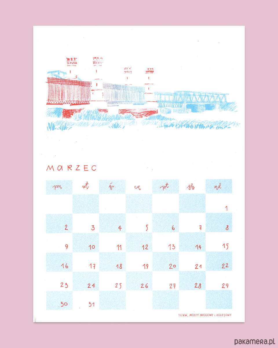 Kalendarz poleca się na ściany domów i na prezenty dla miłośników odręcznego rysunku, architektury i druku.