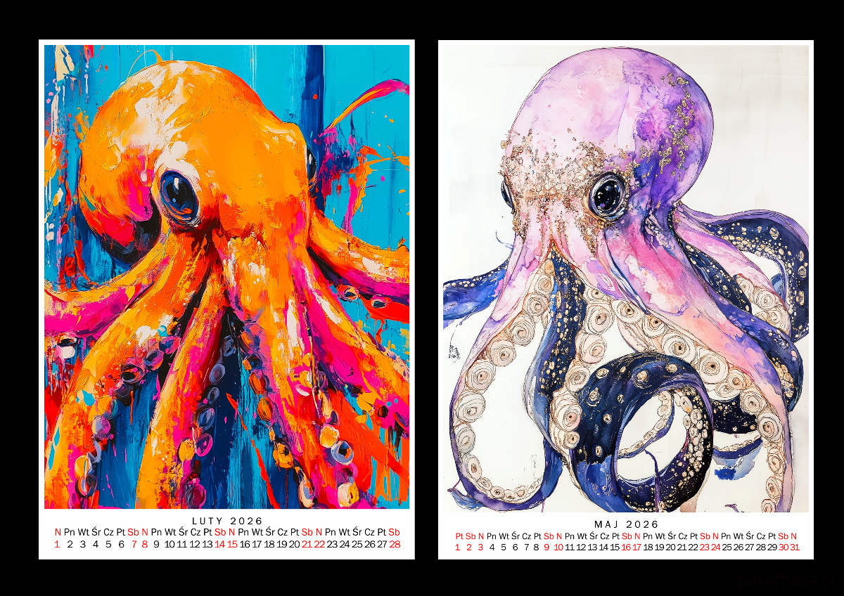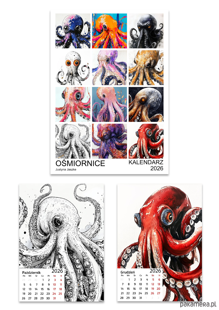 Autorski, oryginalny Kalendarz na 2026 r. - OŚMIORNICE