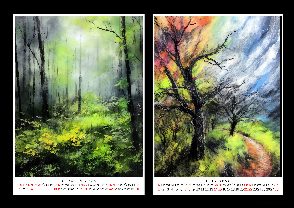 Autorski, oryginalny Kalendarz na 2026 r. - Pastelowy Las