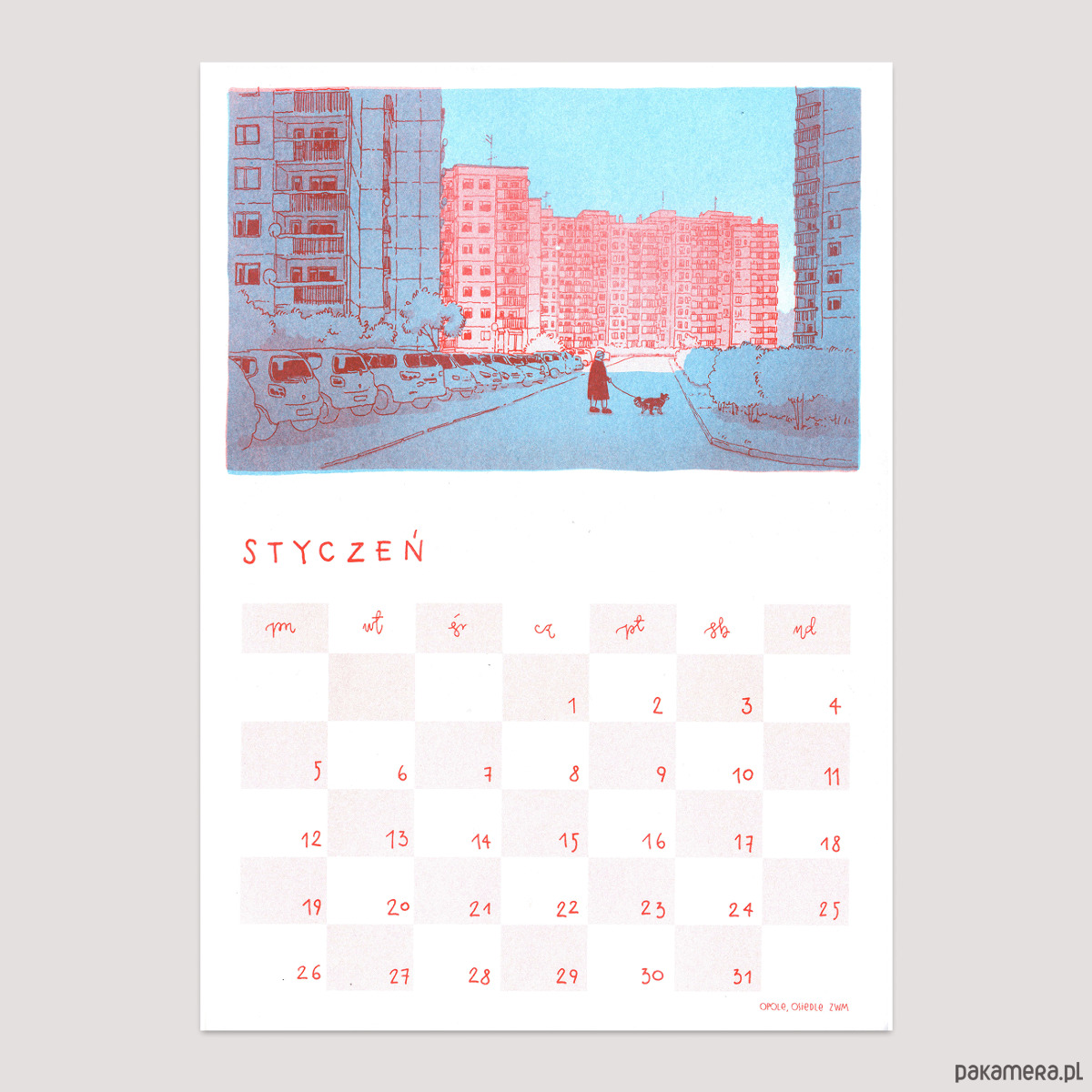 Kalendarz poleca się na ściany domów i na prezenty dla miłośników odręcznego rysunku, architektury i druku.