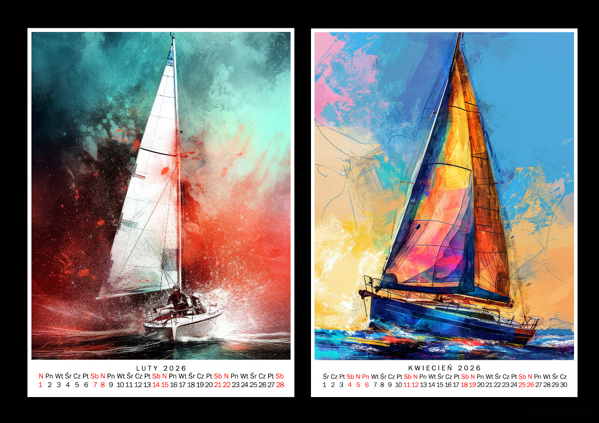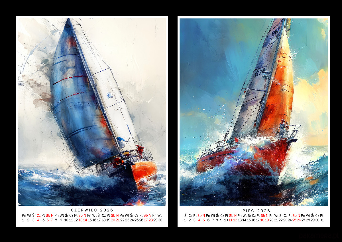 Autorski, oryginalny Kalendarz na 2026 r. - Żaglówki