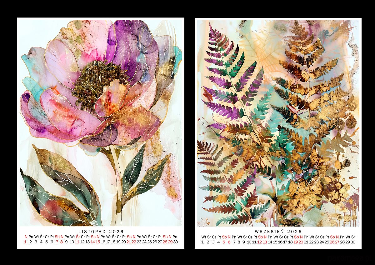 Autorski, oryginalny Kalendarz na 2026 r. - ZŁOTA FLORA