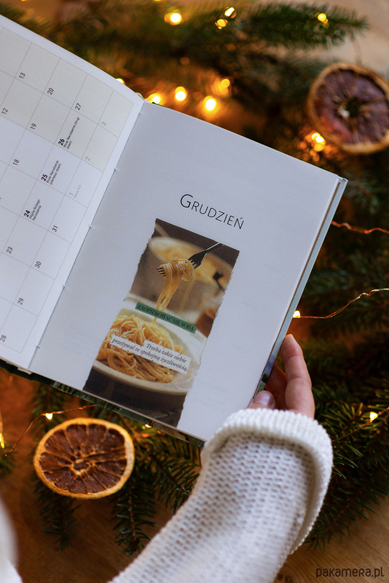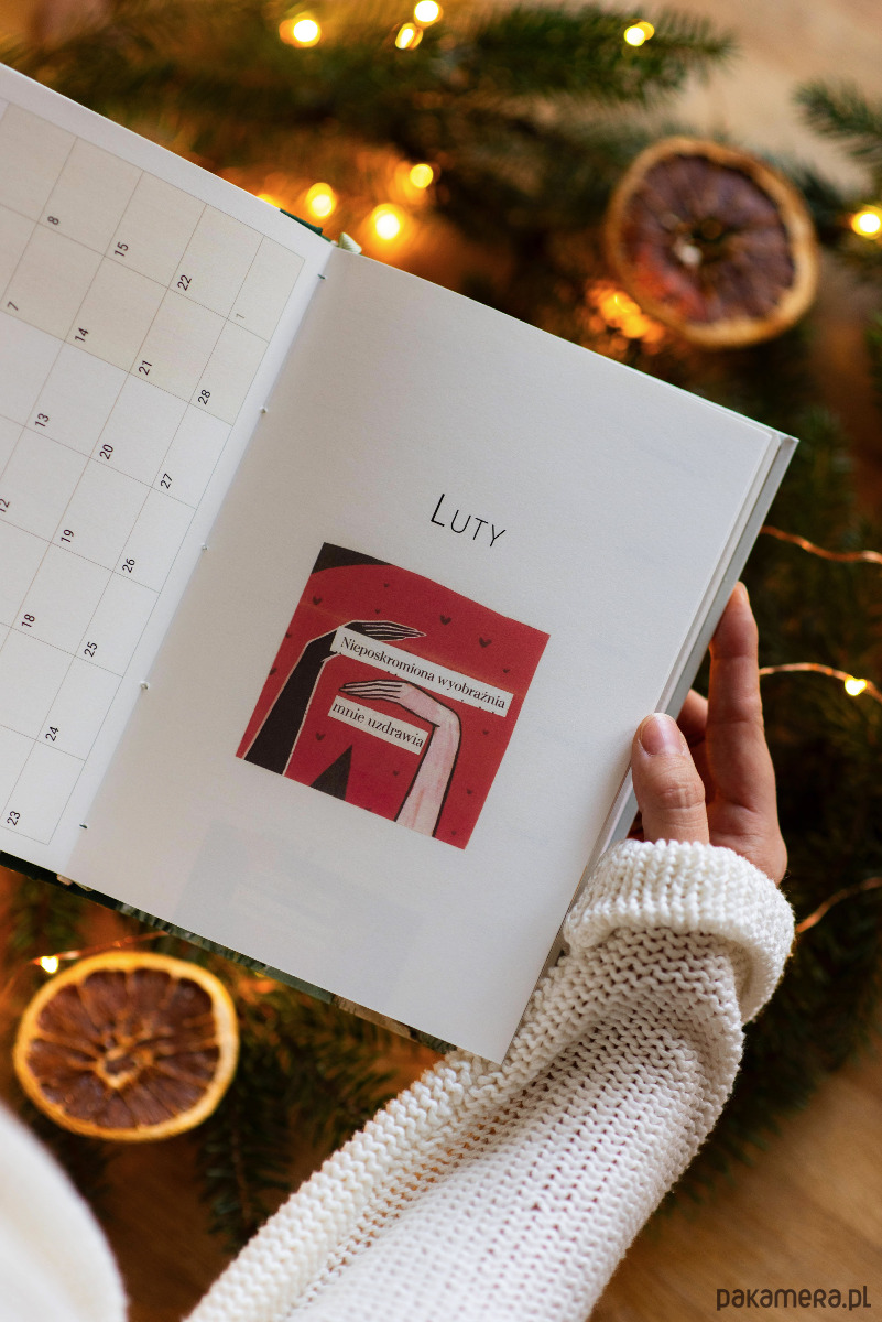 Ten kalendarz jest wyjątkowy, ponieważ przeplatają się w nim drobne, słowno-graficzne kolaże. Takie prawdziwe – wycięte z papieru nożyczkami, ułożone w kompozycje i zeskanowane do projektu.