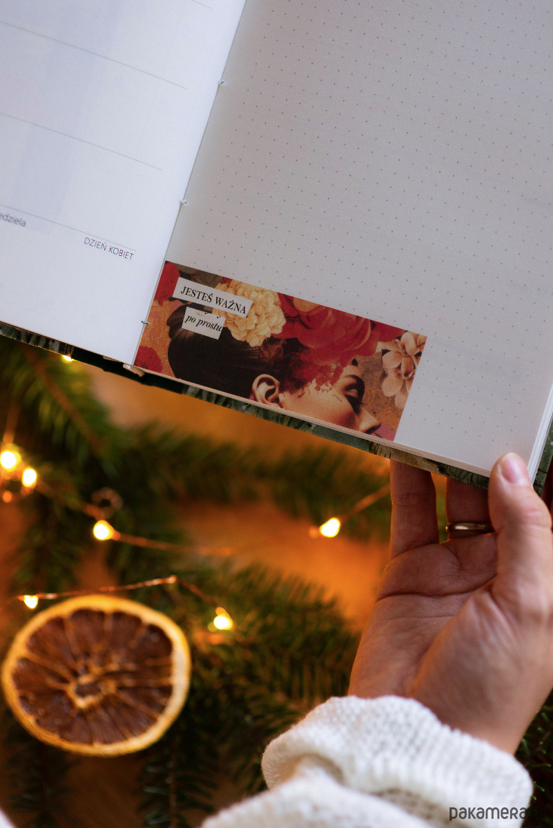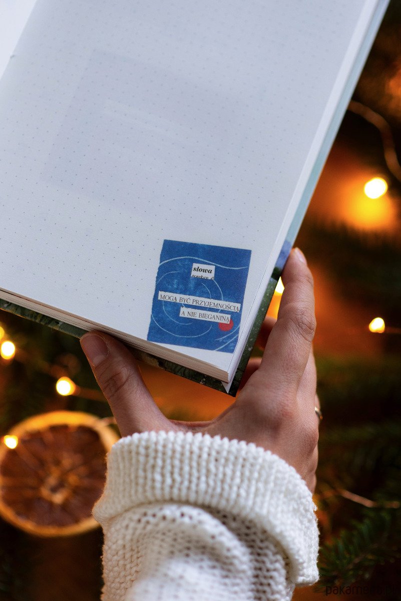 ♥ Na prawej stronie jest strona w kropki na notatki, na której pojawiają się kolaże i starannie dobrane cytaty.