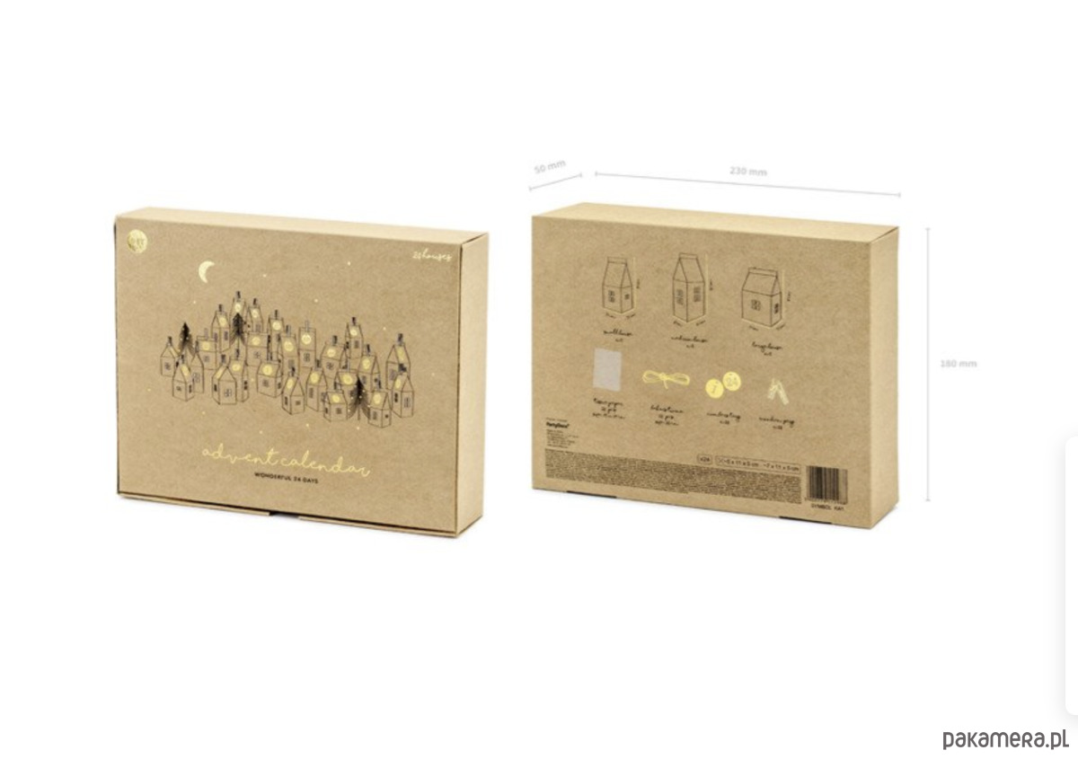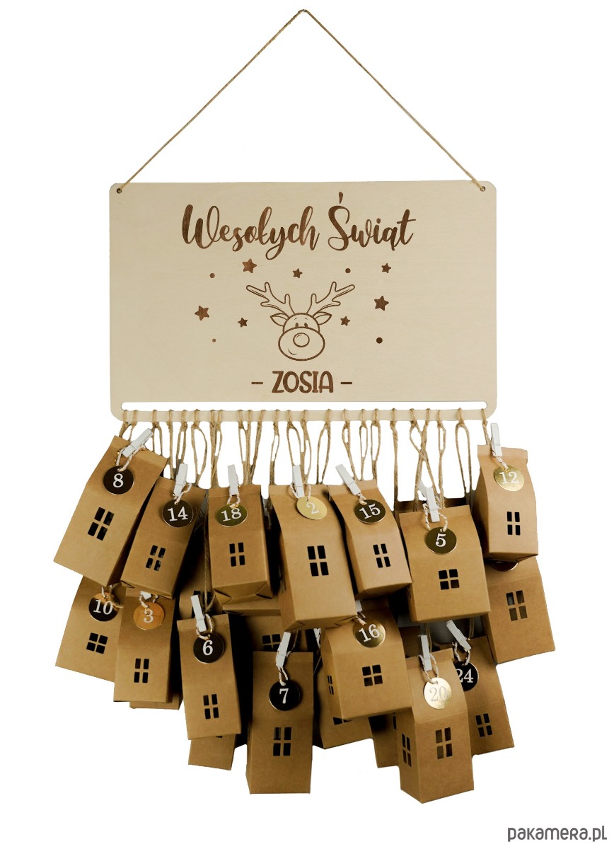 KALENDARZ ADWENTOWY Drewniany + 24 Domki Zestaw