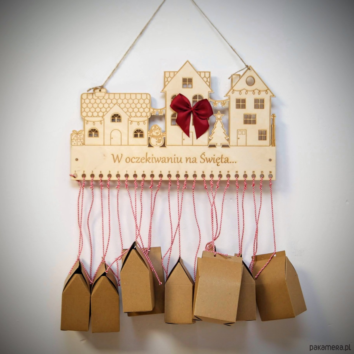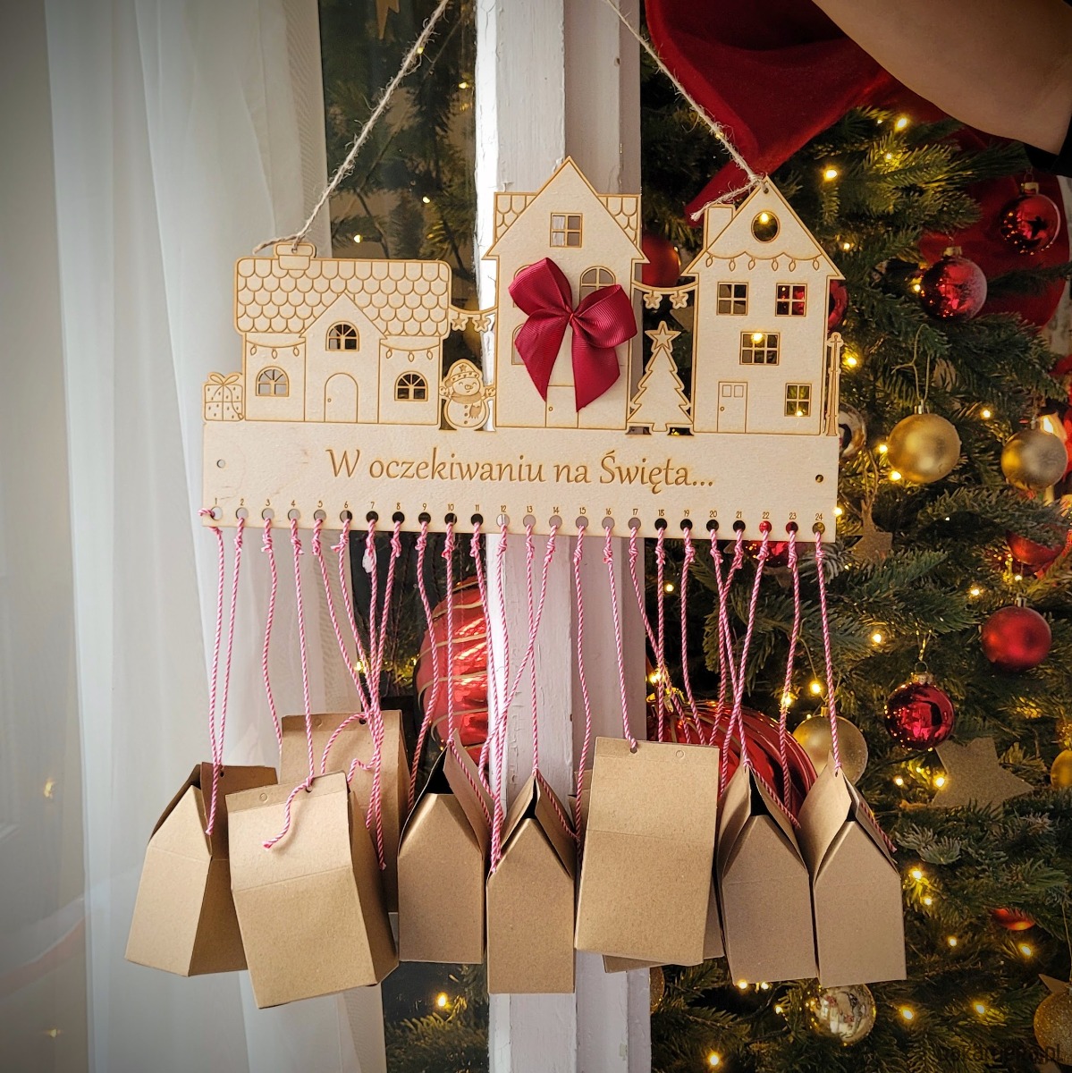 Kalendarz możesz ozdobić według własnego pomysłu – pomalować farbami, udekorować brokatem, naklejkami lub świątecznymi wstążkami. Dzięki temu stanie się unikalną ozdobą Twojego domu i pięknym elementem świątecznego wystroju.