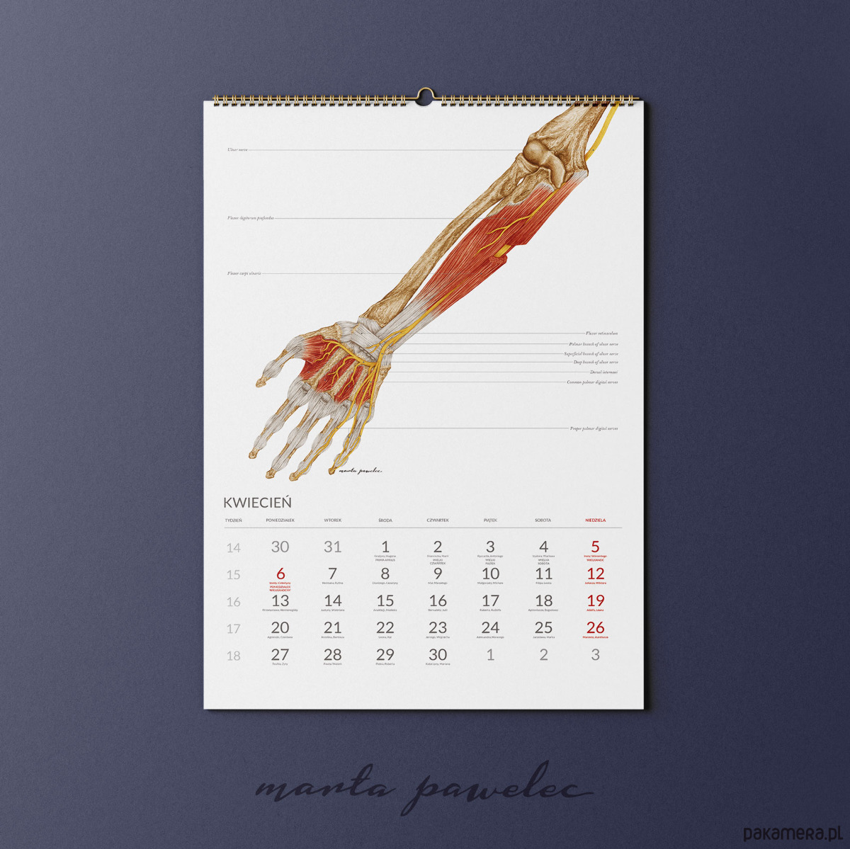 Odkryj piękno ludzkiej anatomii z Kalendarzem Anatomicznym 2026! 13 szczegółowych ilustracji medycznych w formacie A2, stworzonych przez ilustratorkę medyczną, to połączenie wiedzy, sztuki i elegancji. Doskonały prezent dla lekarzy, studentów i wszystkich pasjonatów medycyny. Po zakończeniu roku każda karta może stać się plakatem – zyskaj kalendarz i 12 anatomicznych obrazów w jednym!