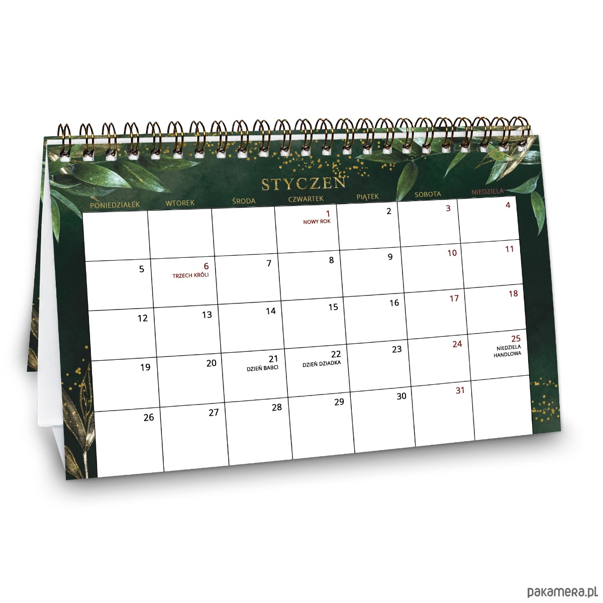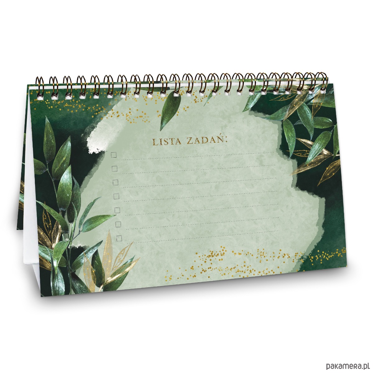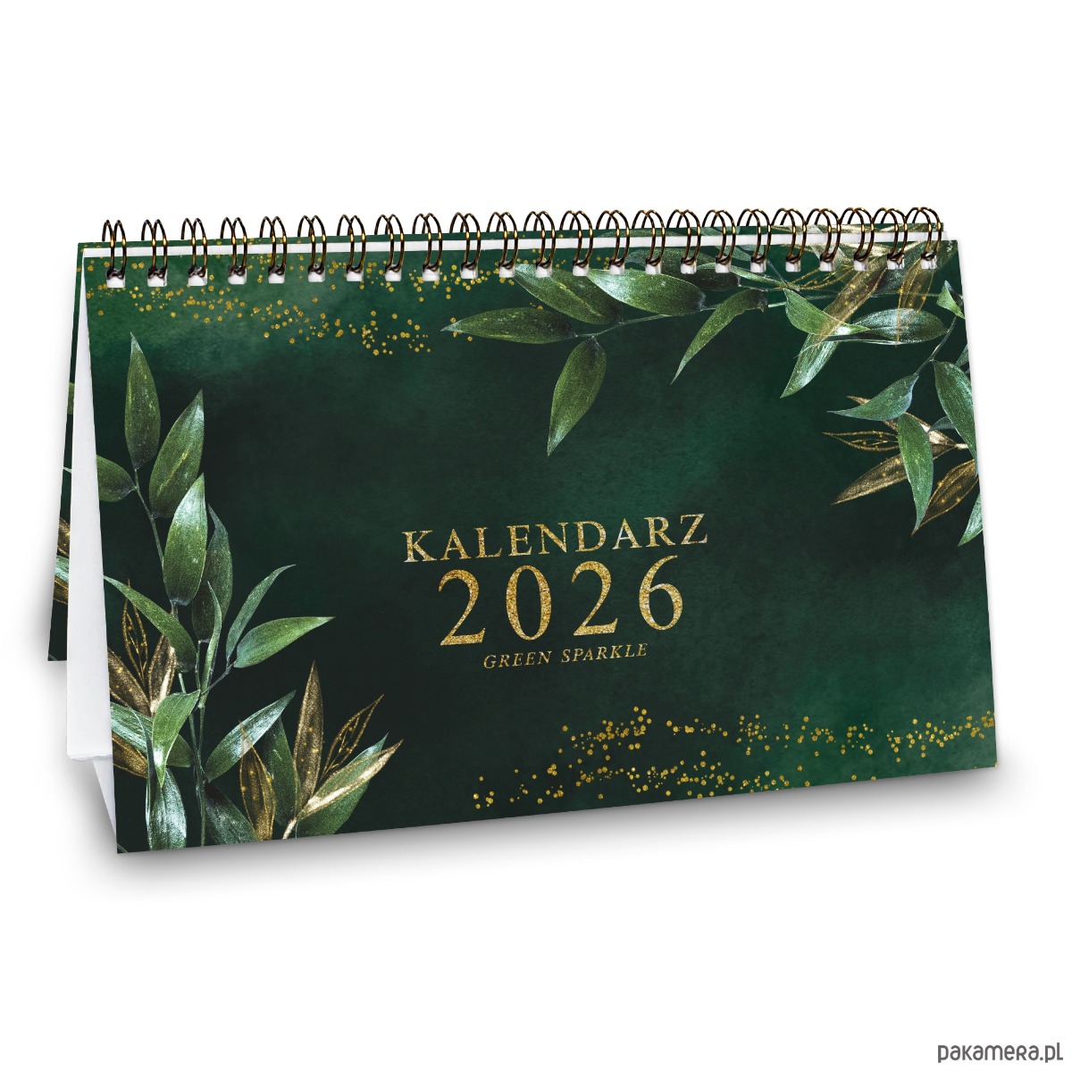 Kalendarz biurkowy 2026 GREEN SPARKLE na biurko wolnostojący.